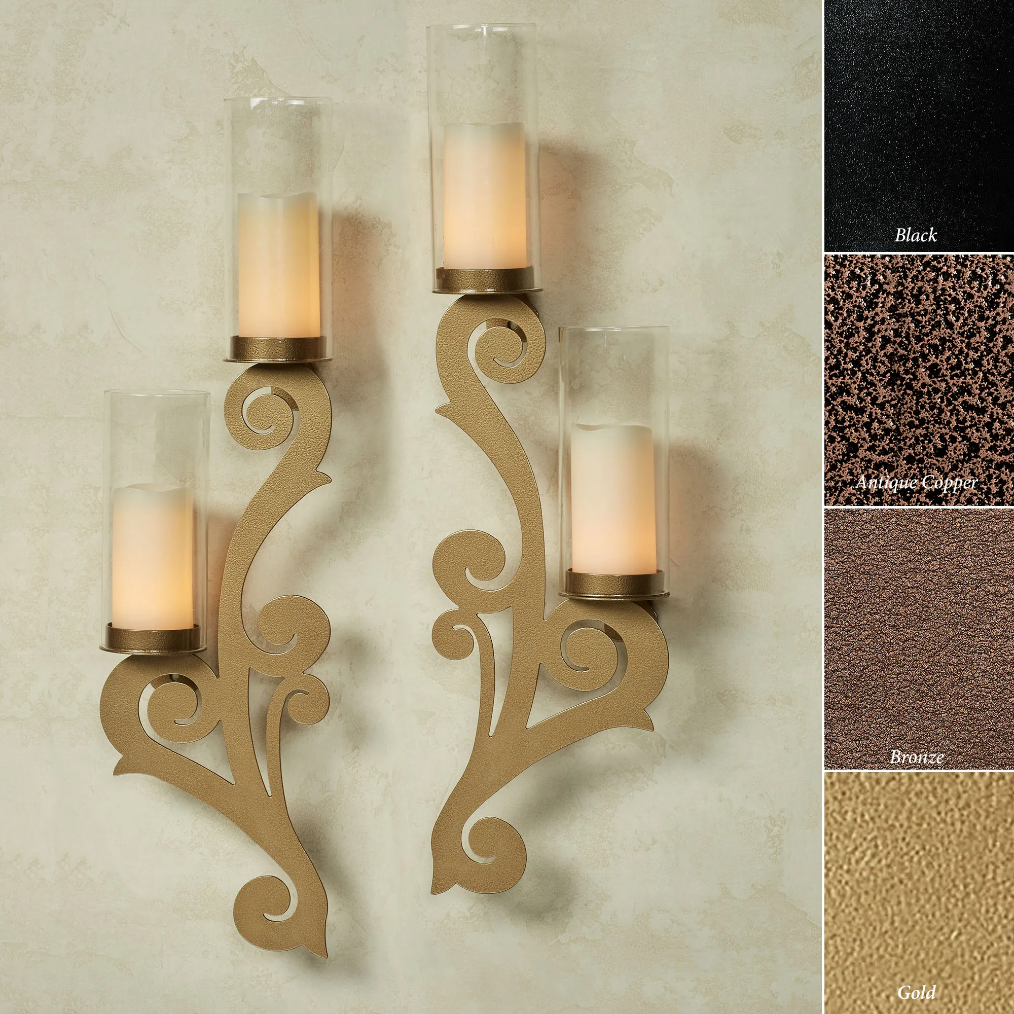 • Specify Gold, Antique Copper, Black, or Bronze