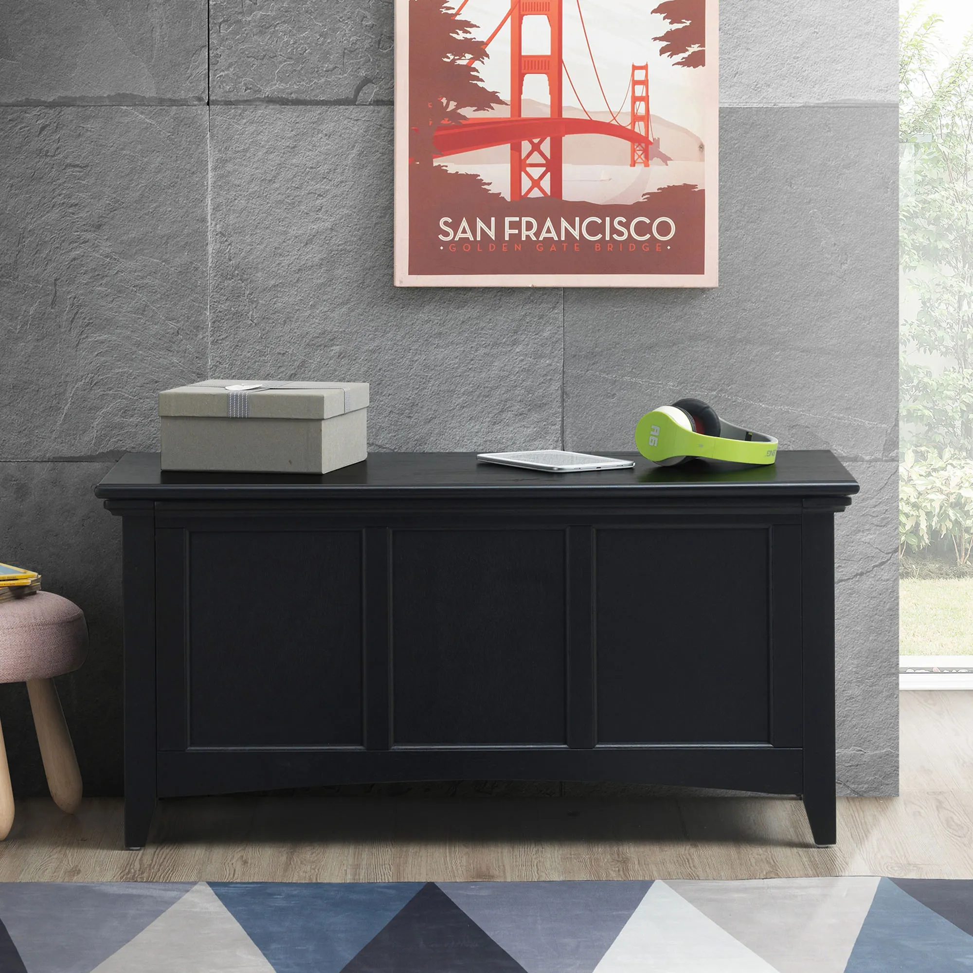 Aura Black Wooden Blanket Storage Chest with Safety Hinges