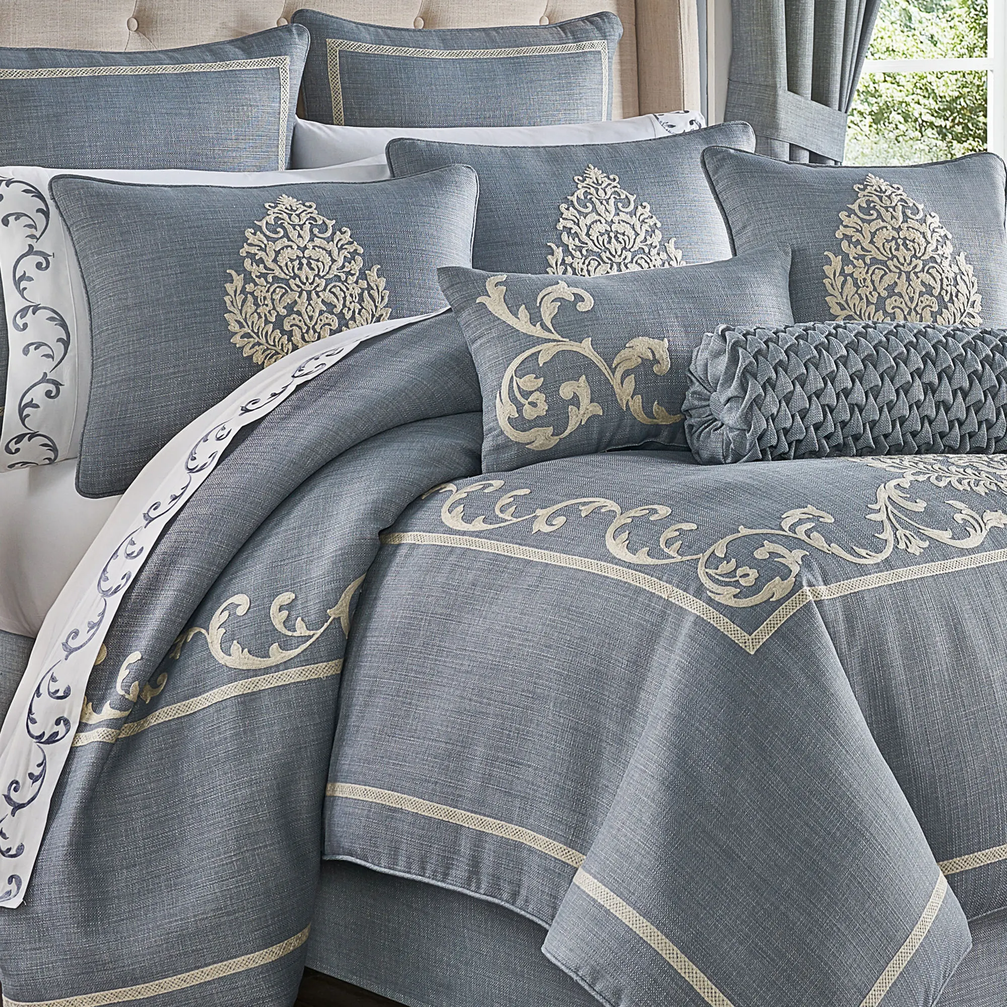 Aurora Scroll Slate Blue Comforter Bedding by J Queen New York