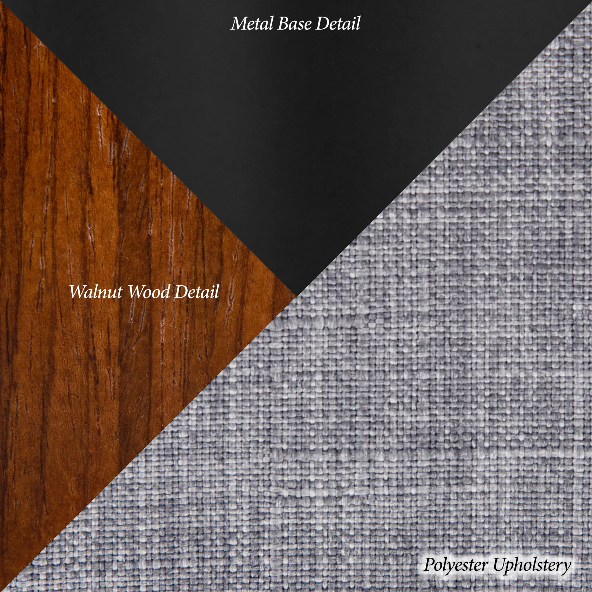 The Avery Modern Office Chair is solid walnut wood, polyester, and metal.