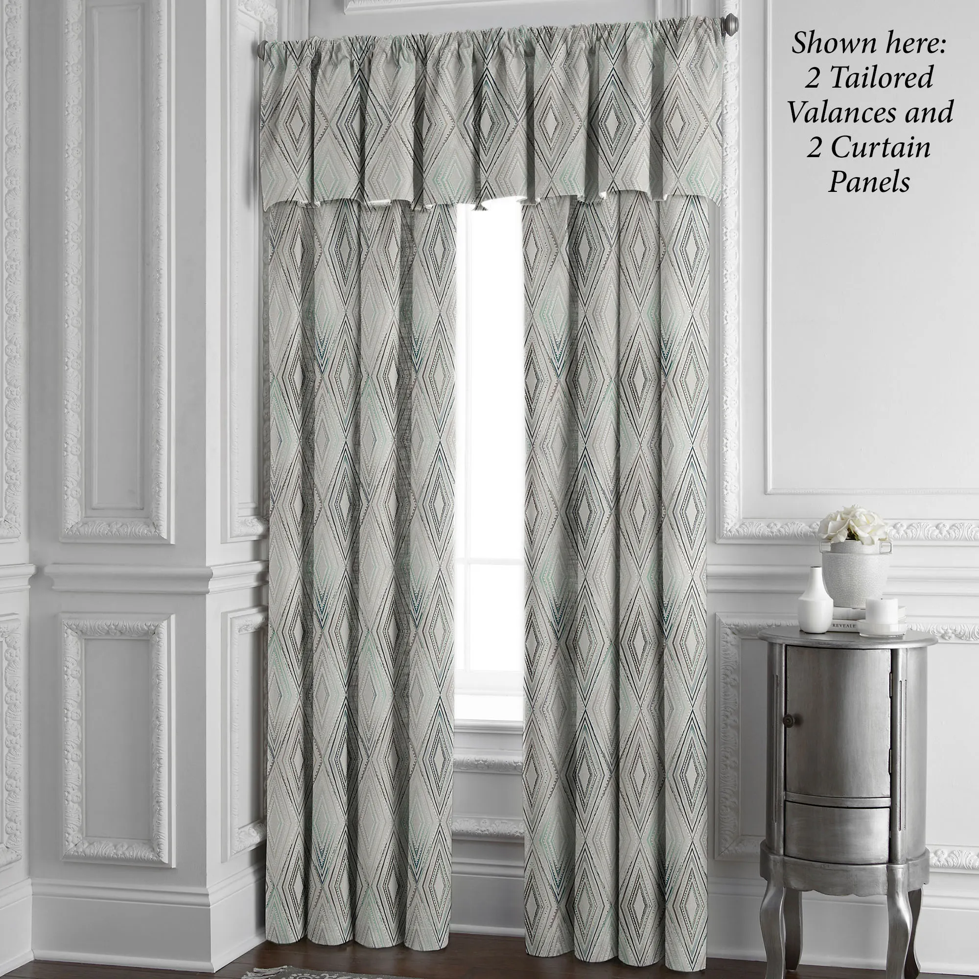 Lined Window Treatments have diamonds, tailored edges, and 3.5" rod pockets. Curtain Panel is sold individually. Valance is also available.