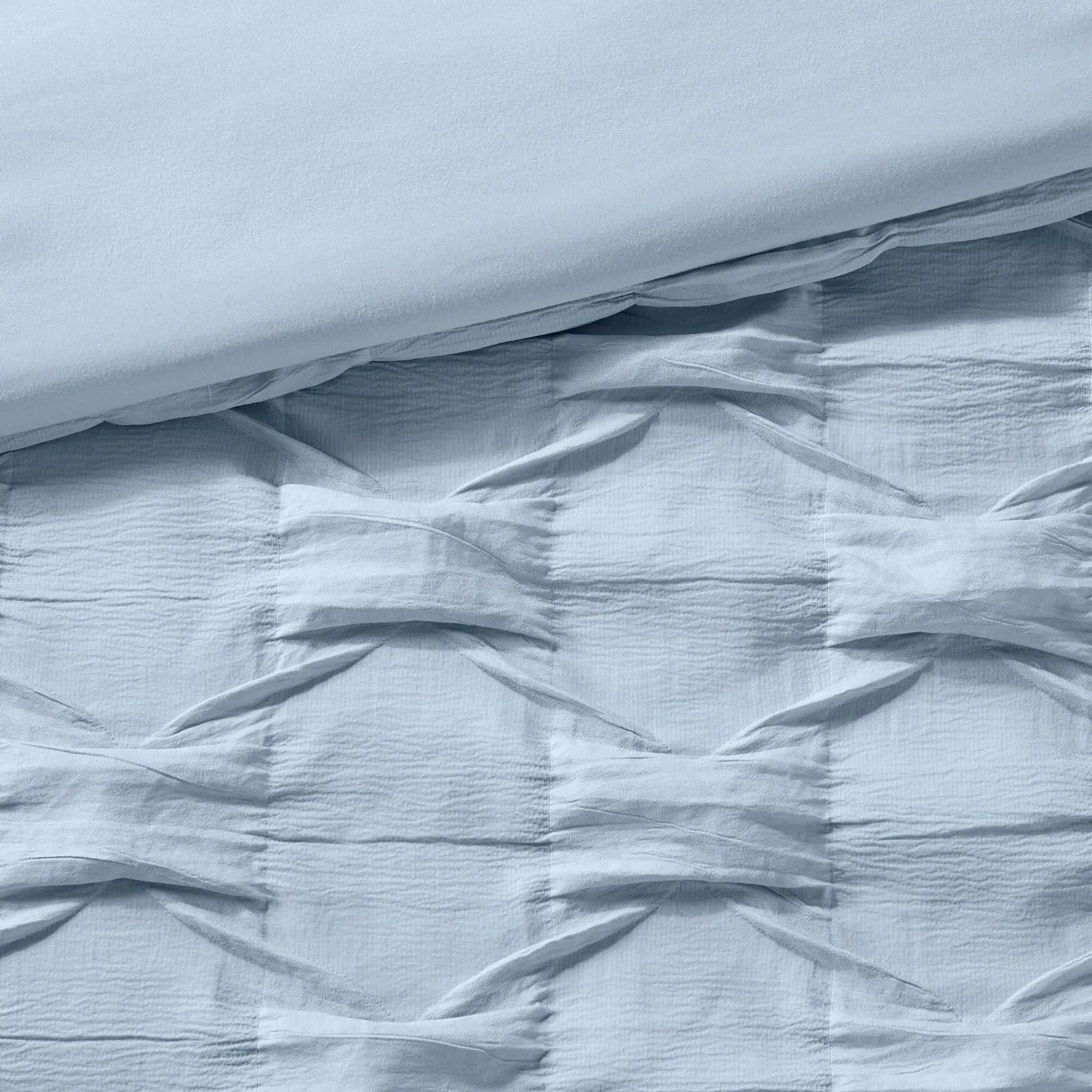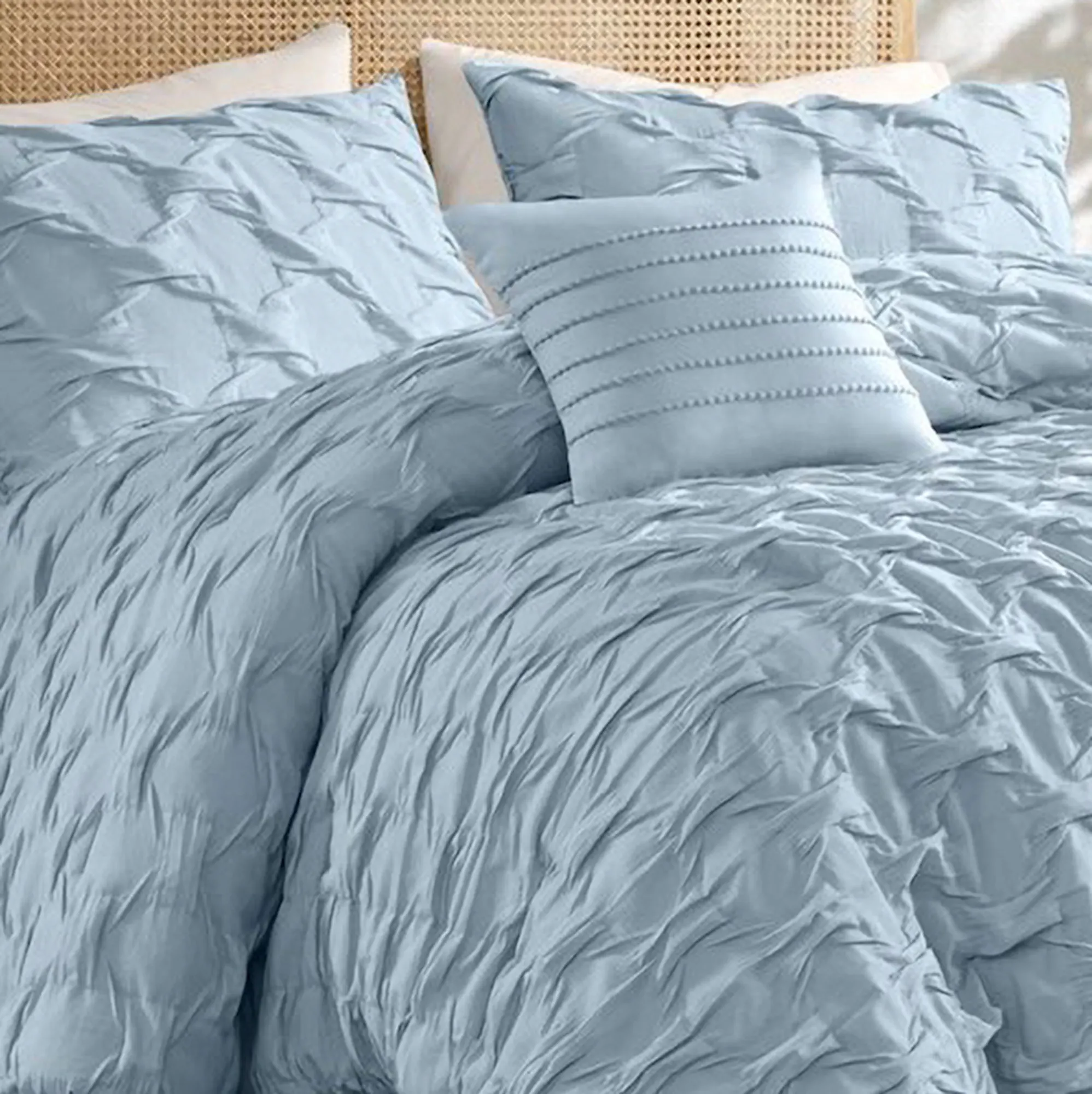 Bailey Solid Blue Ruched Pleated 3-4 pc Comforter Bed Set from Comfort Spaces