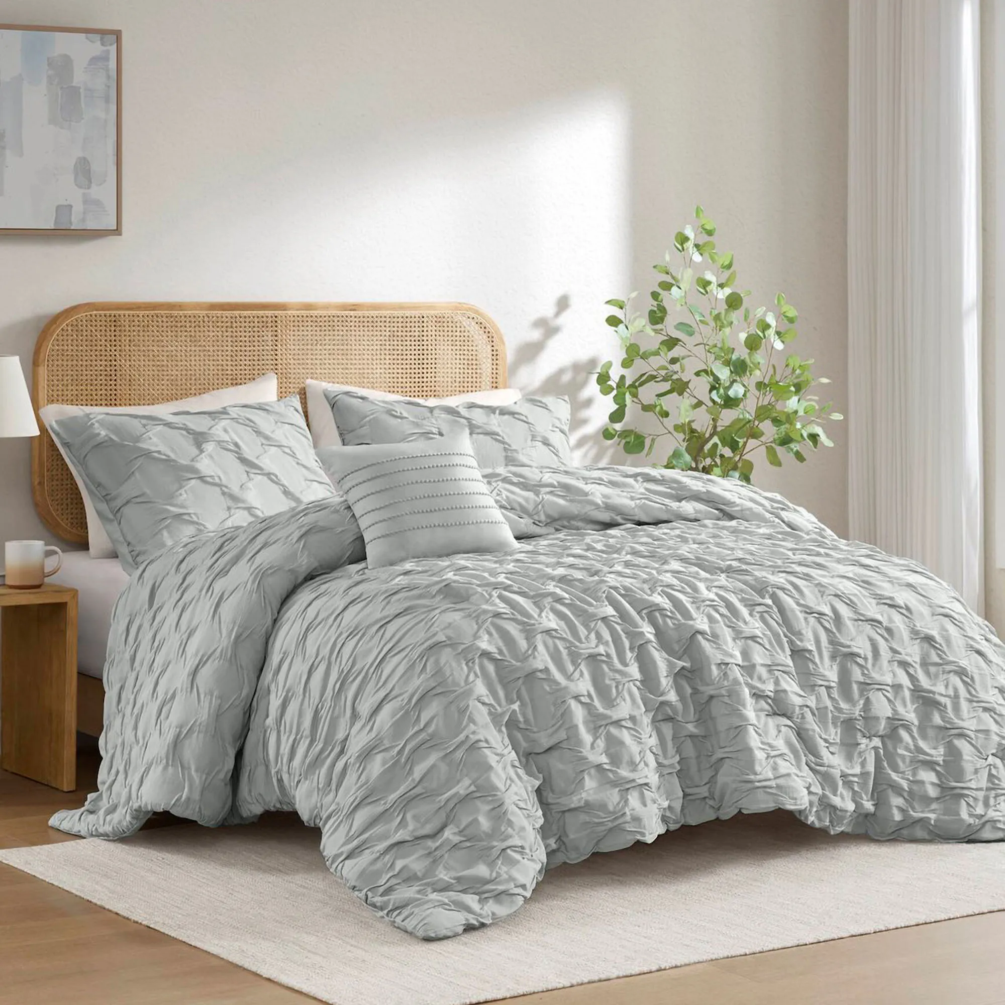 Bailey Solid Gray Ruched Pleated 3-4 pc Comforter Bed Set from Comfort Spaces