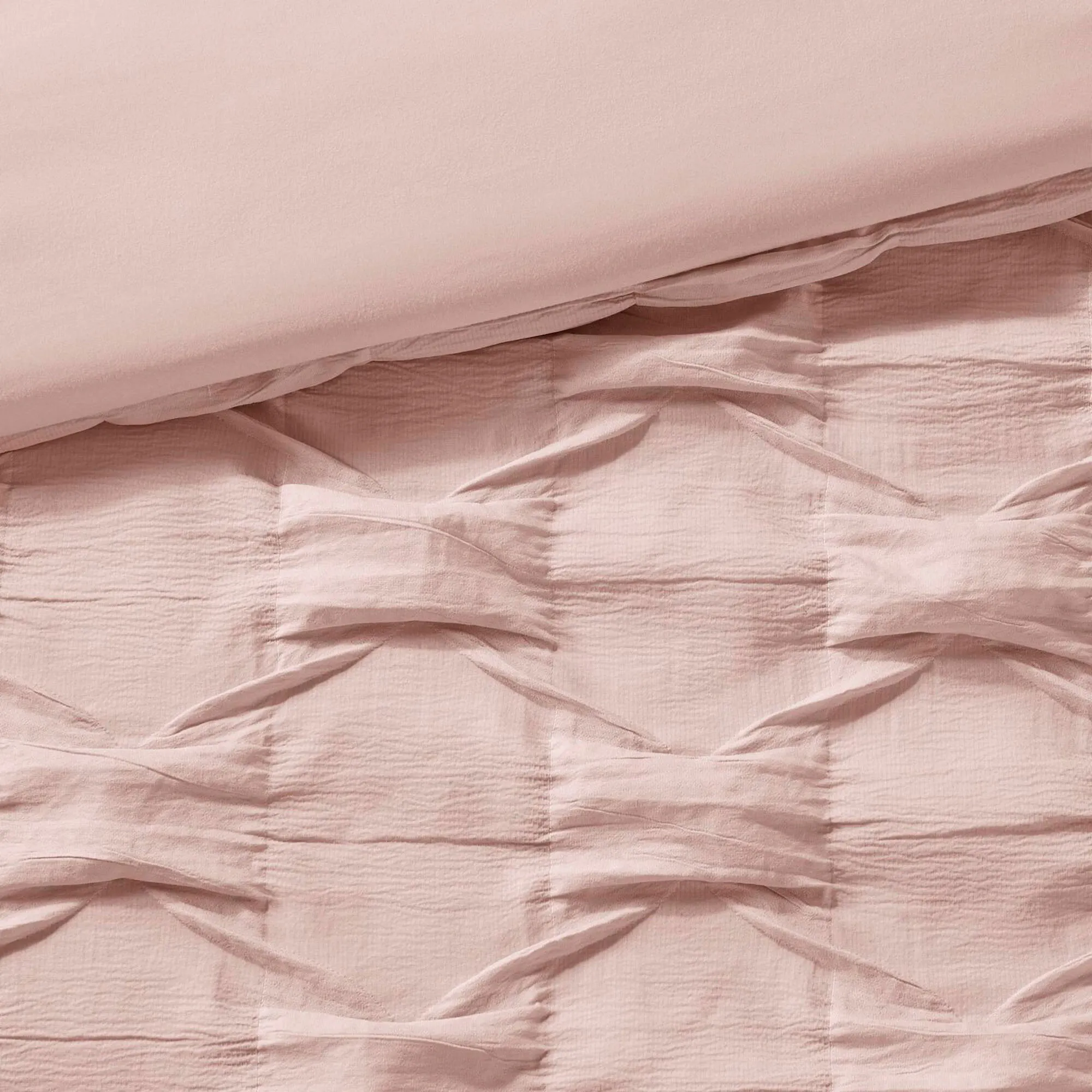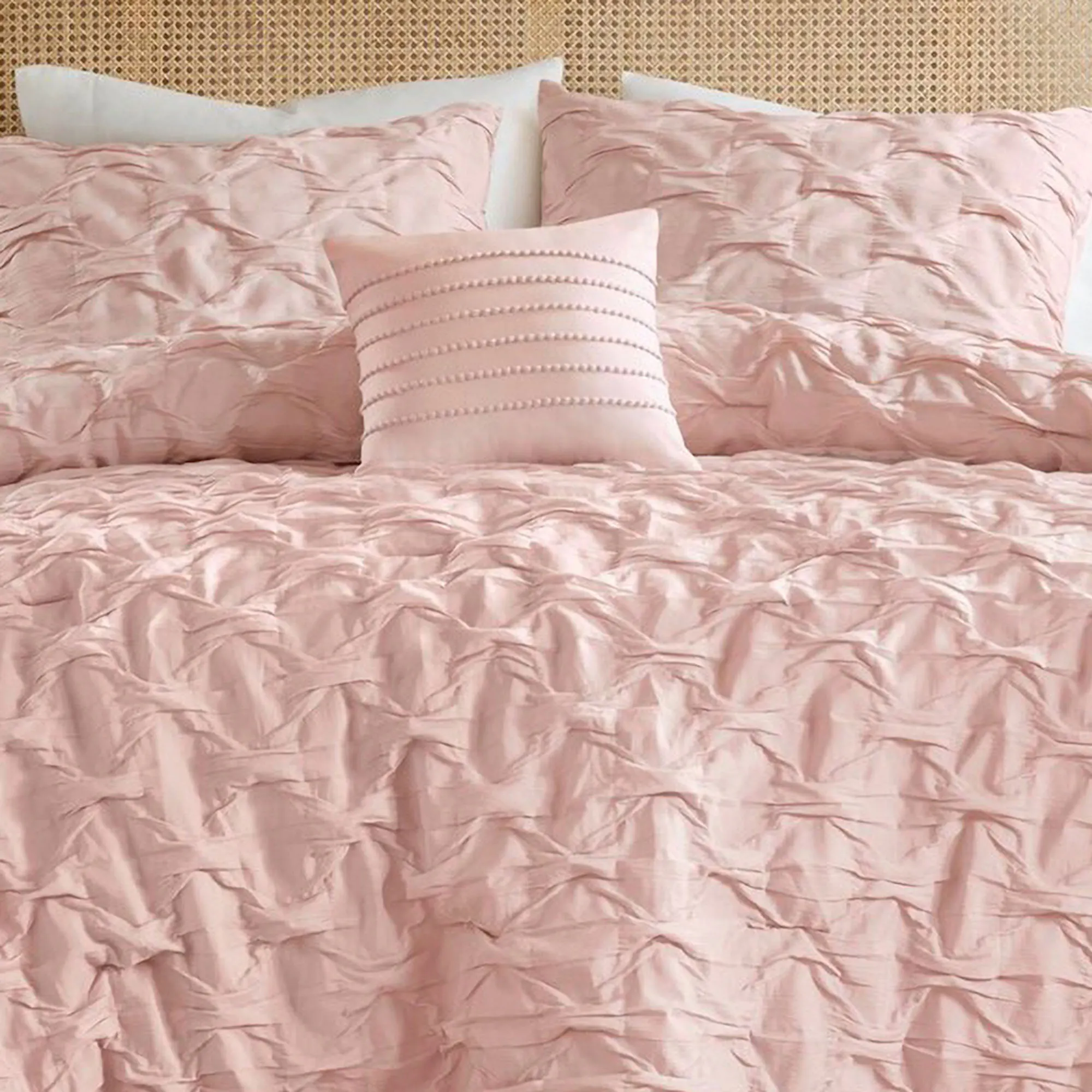 Bailey Solid Pink Ruched Pleated 3-4 pc Comforter Bed Set from Comfort Spaces
