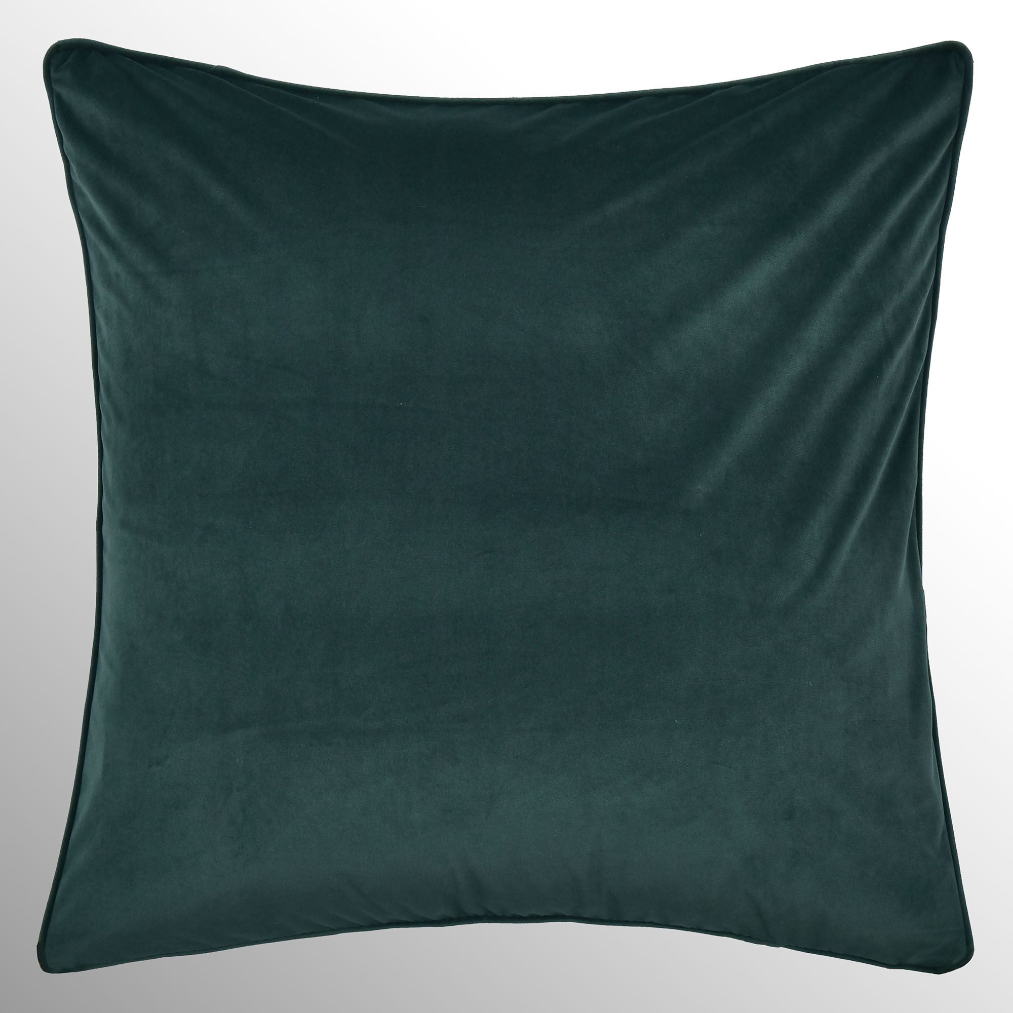 European Sham is dark teal velvet with piped edges; reverses to color-coordinating plaid; zipper closure.