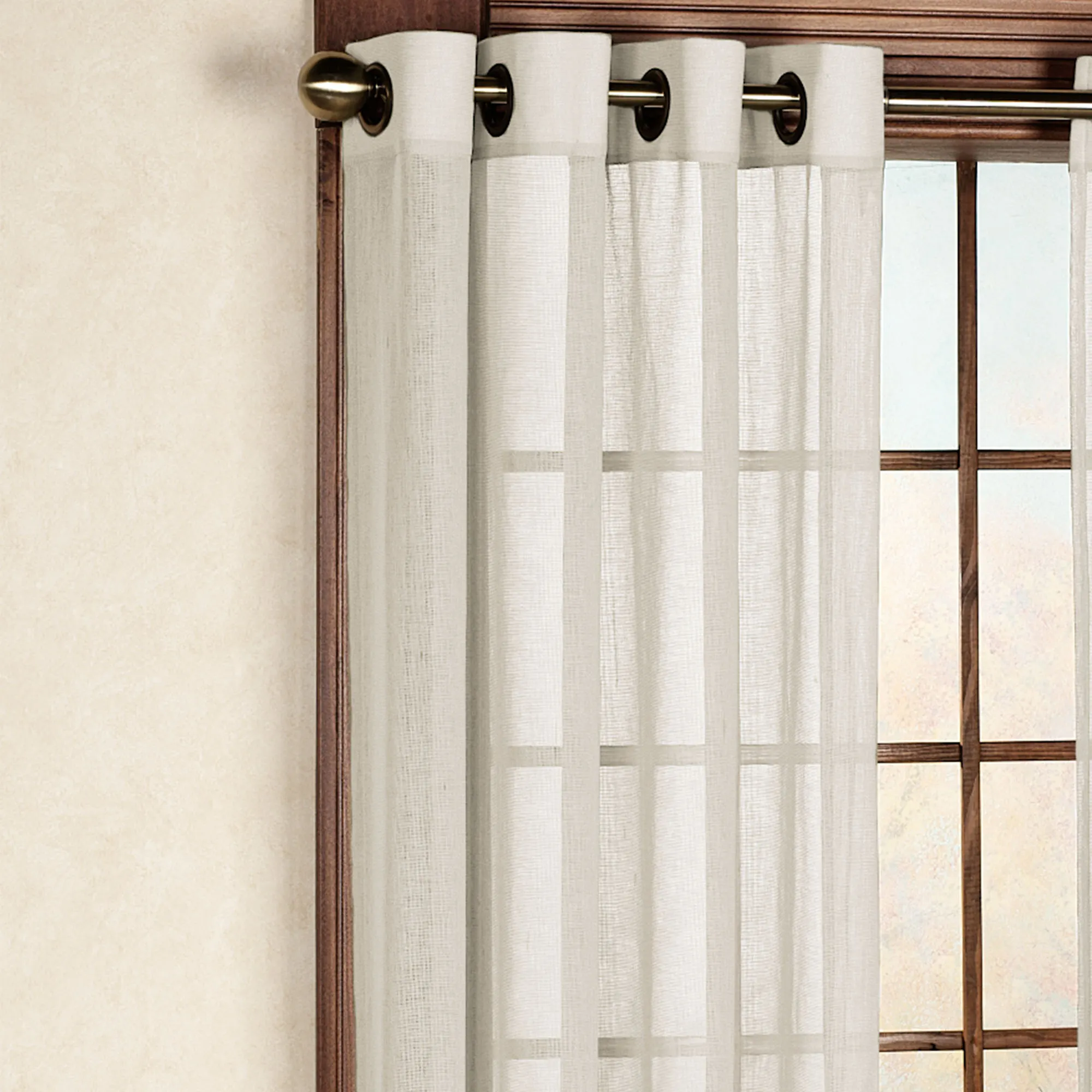 Bal Harbour Grommet Curtain Panels and Patio Panels are semi-sheer polyester with metal grommets. Imported.