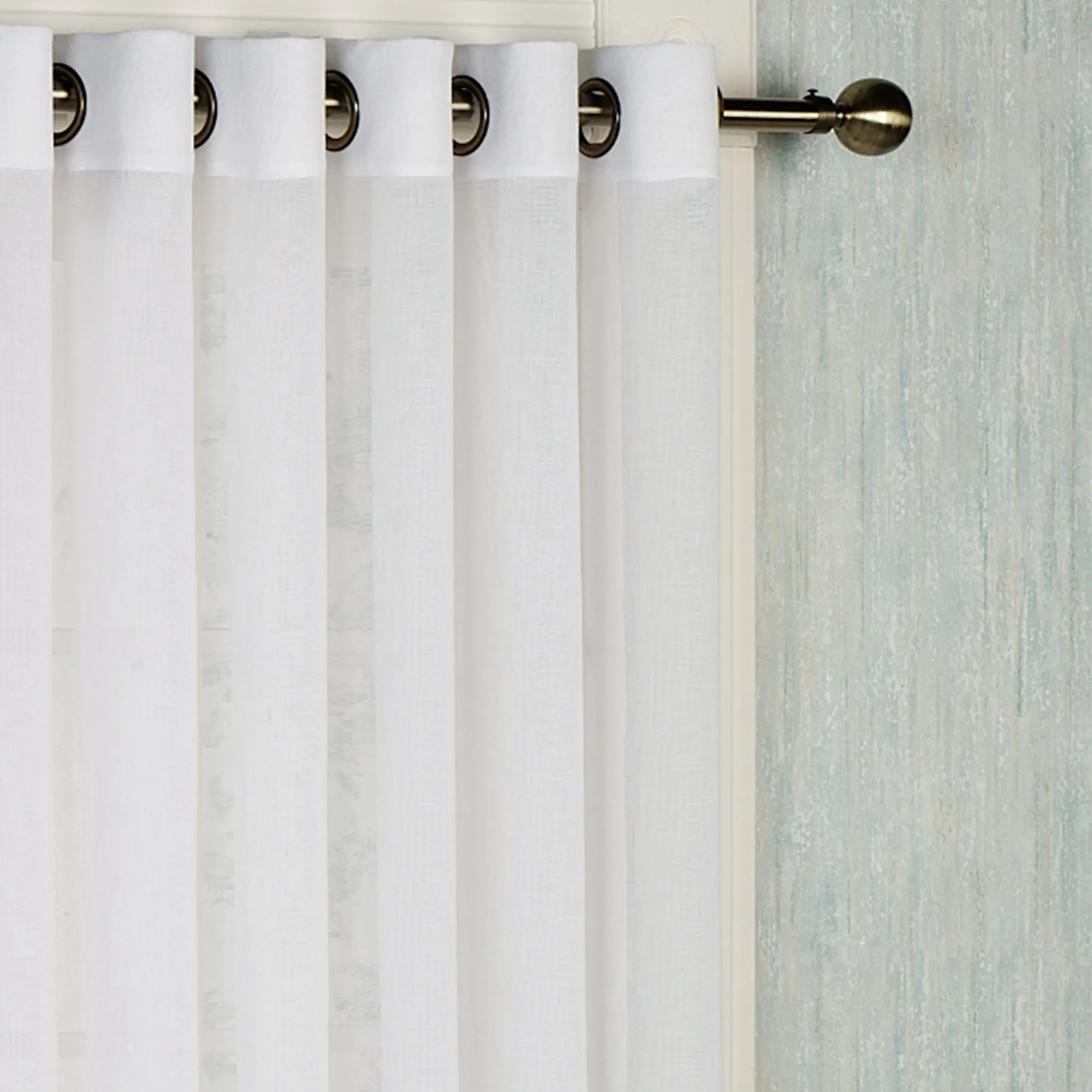 The solid color, semi-sheer polyester Bal Harbour Grommet Curtain Panel has the look and feel of woven cotton. The texture, clean lines, and grommet top make for a flexible, contemporary look suited to a variety of room decor. The tailored Curtain Panel is sold individually and has 1.75" dia. metal grommets with an antique bronze finish. Machine wash. Imported.