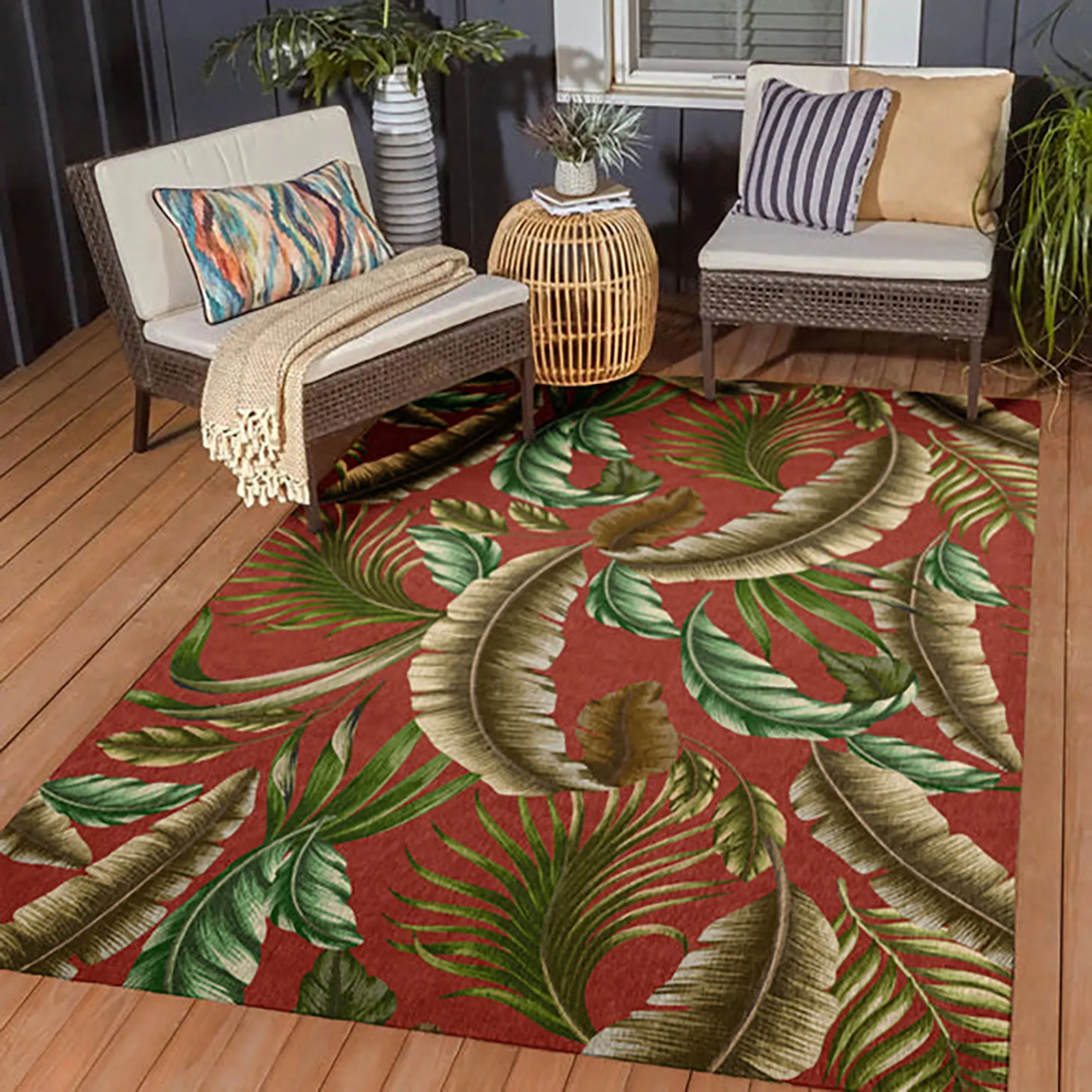 Bananza Tropical Palm Banana Leaf Machine Washable Indoor Outdoor Rugs