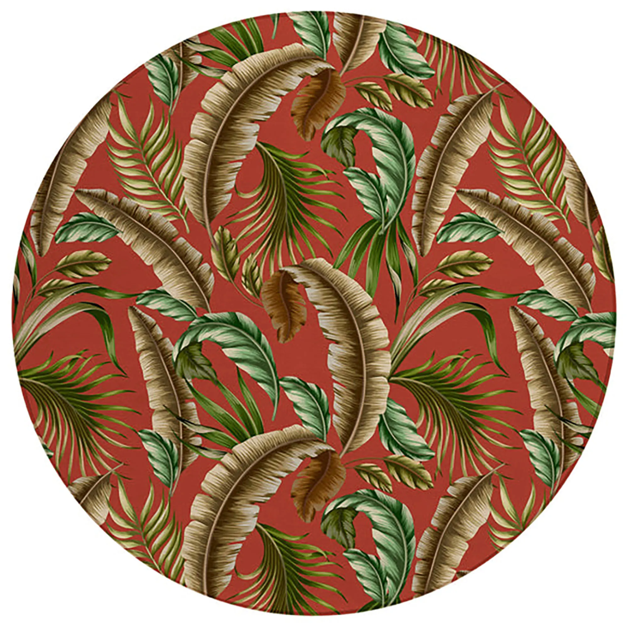 Bananza Tropical Palm Banana Leaf Machine Washable Indoor Outdoor Round Rug