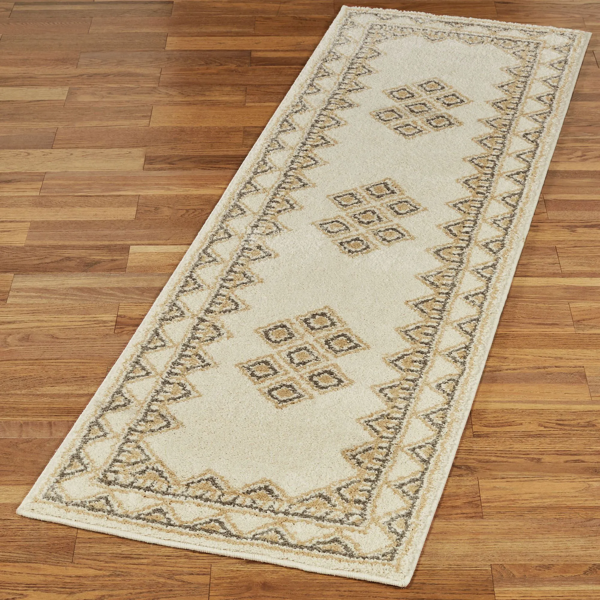 Angular geometrics add charm to the Bangalore Rug Runner. Proudly made in the USA, the 1" thick, shag-style rug is power-loomed of polypropylene in shades of ivory, gray, and light tan. Diamonds decorate the center, while stripes and layered triangles create dynamic borders. We recommend professional cleaning by a rug cleaner.