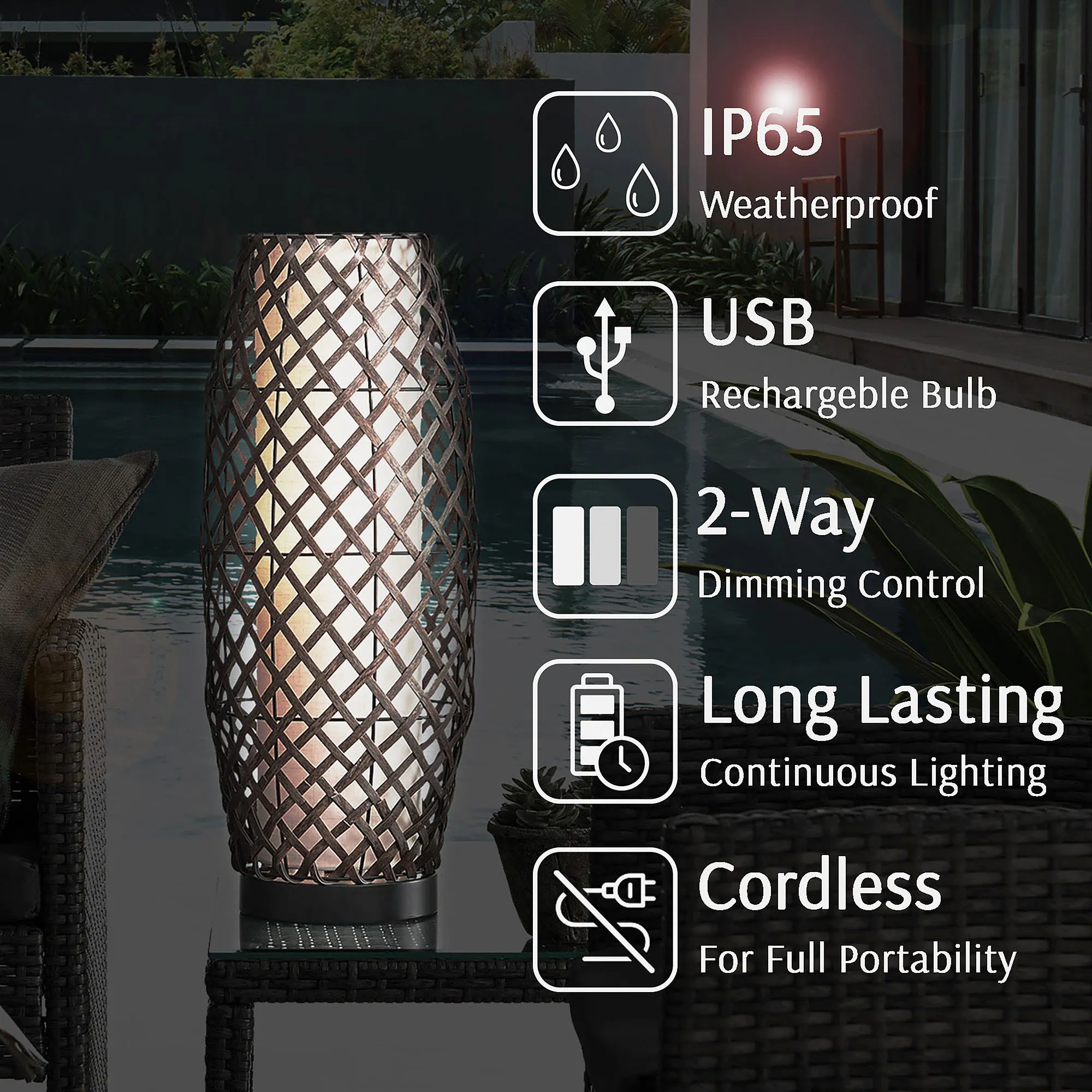 Baran Woven Lattice Cordless Indoor Outdoor Table Lamp with Rechargeable LED Bulb