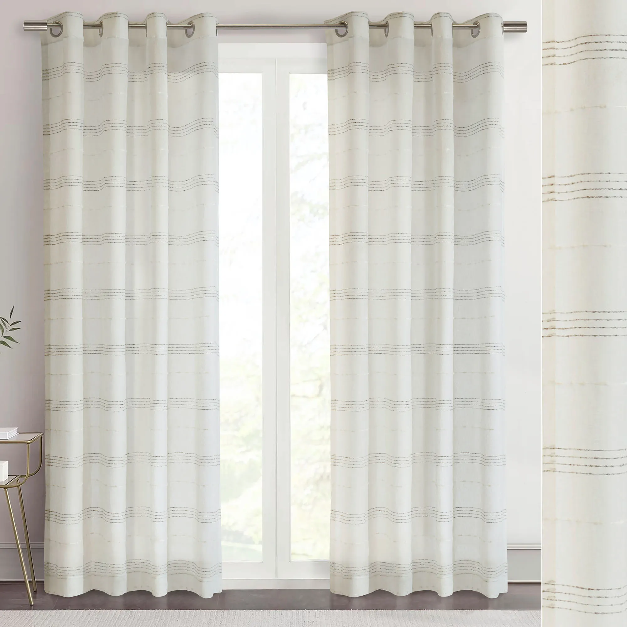 Barberry Gray and White Variegated Striped Sheer Grommet Curtain Panel