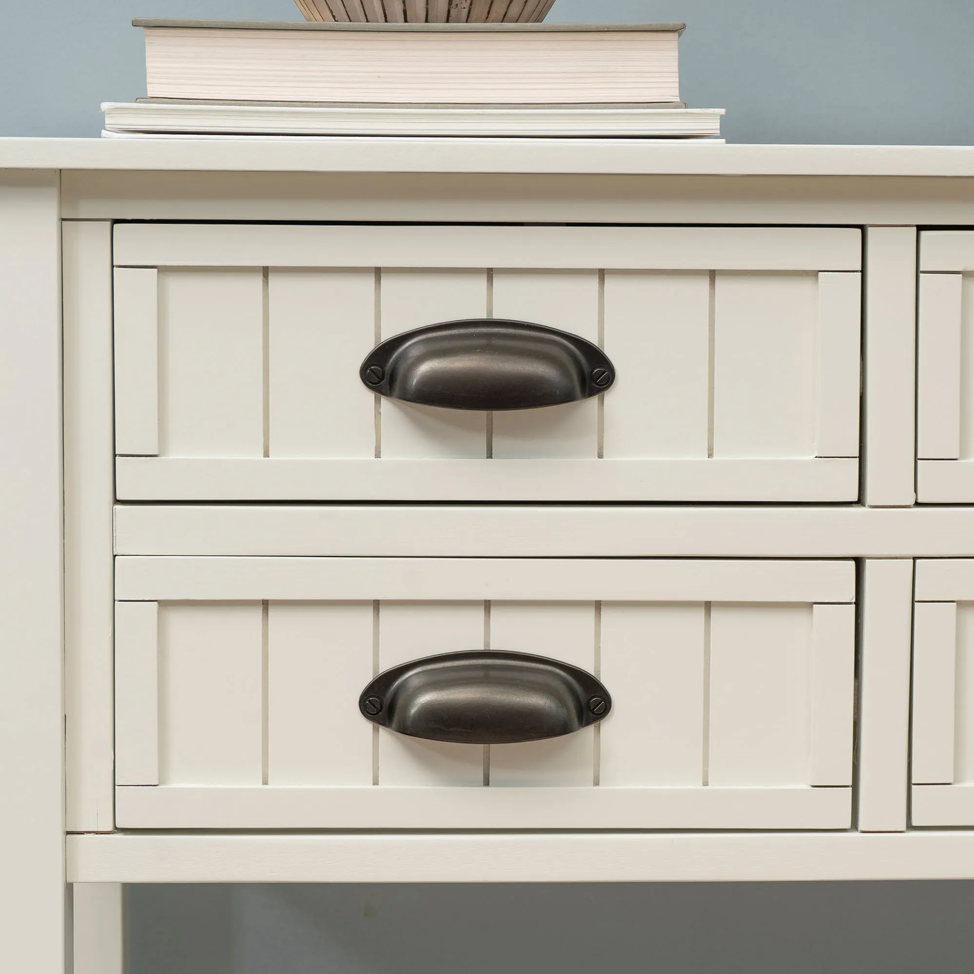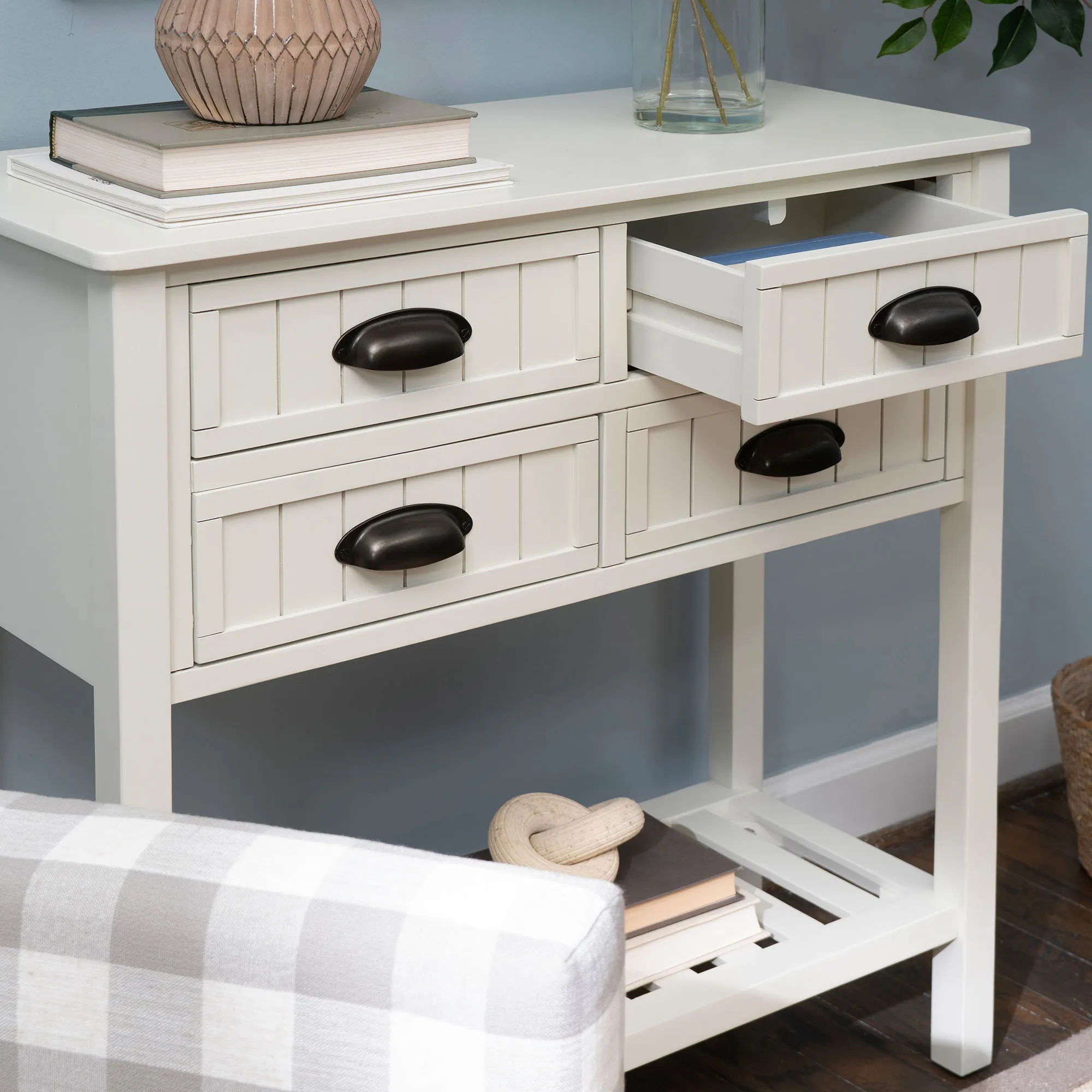 Baxley White Wooden Four Drawer Console Table with Slatted Shelf