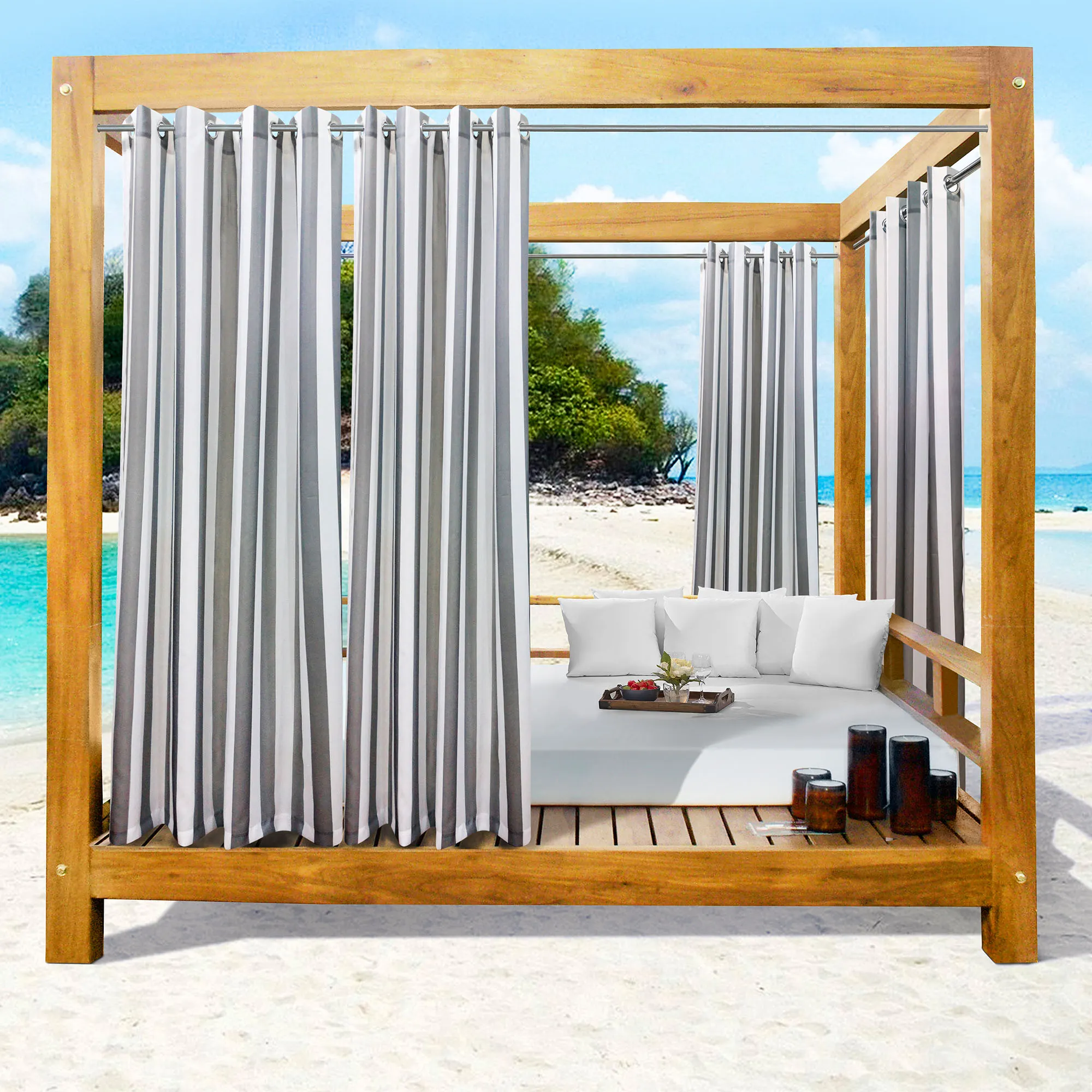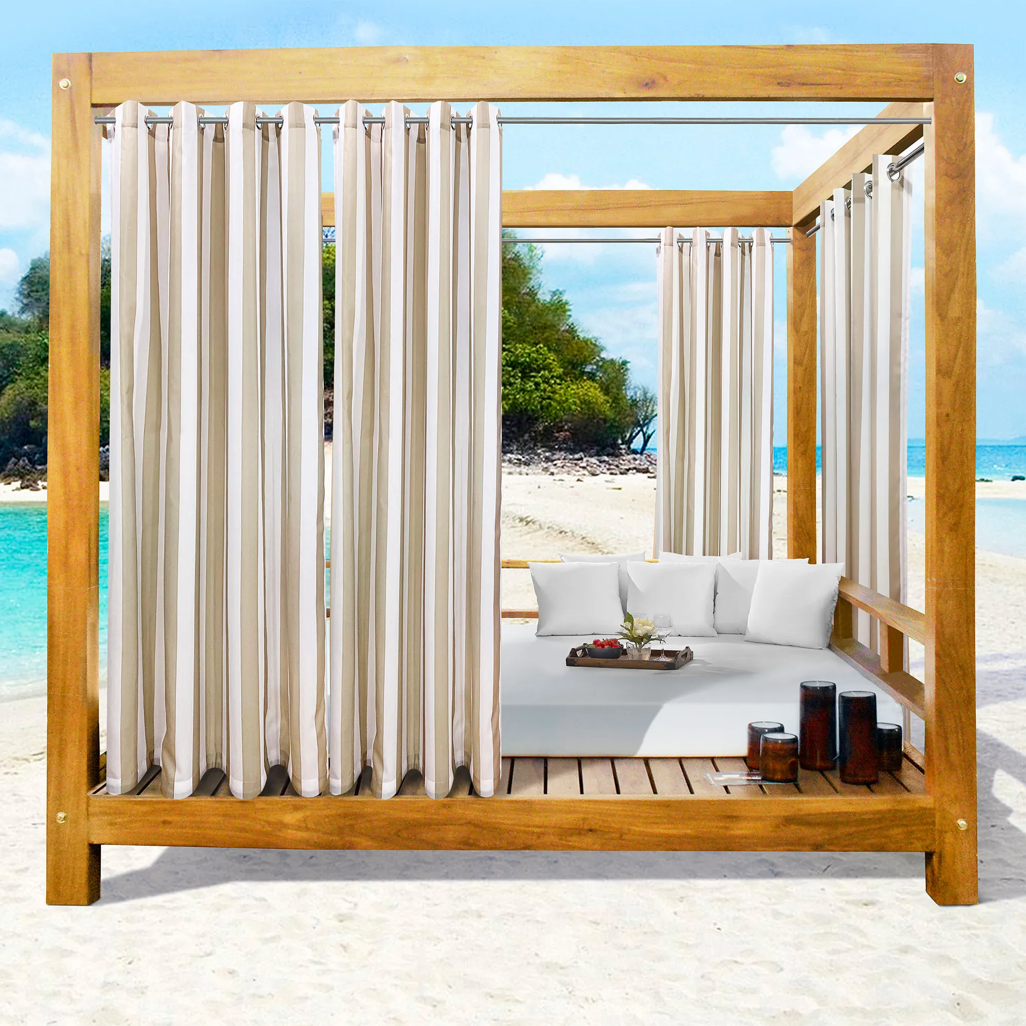Bayport Stripe Water Repellent Semi Sheer Outdoor Grommet Curtains