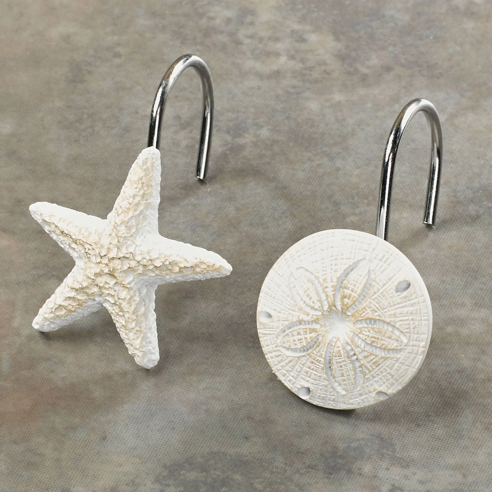 • Sand dollar and starfish shower curtain hooks