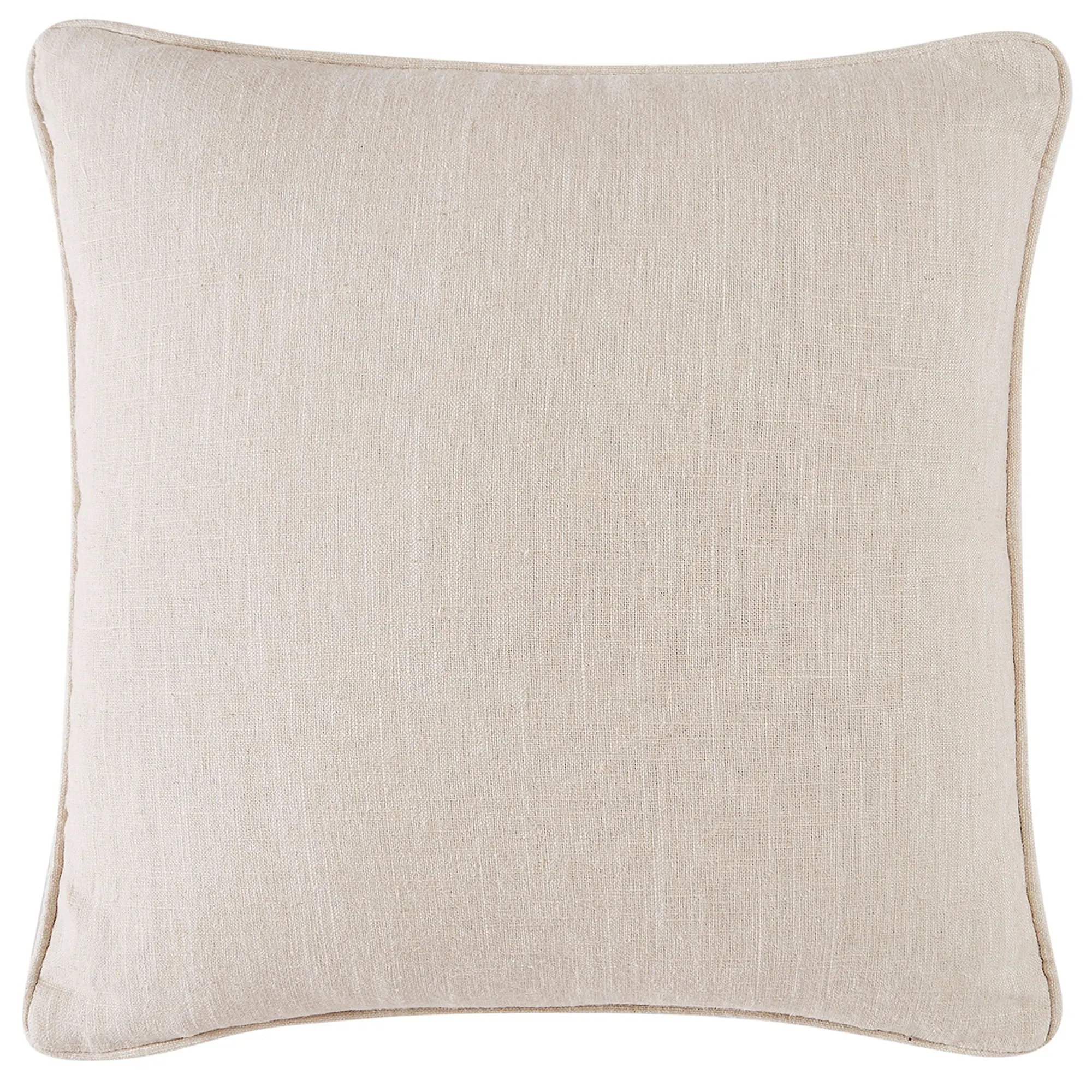 The reversible Ruffled European Sham is slubbed linen with flanged edges and ruffled corners; zipper closure.