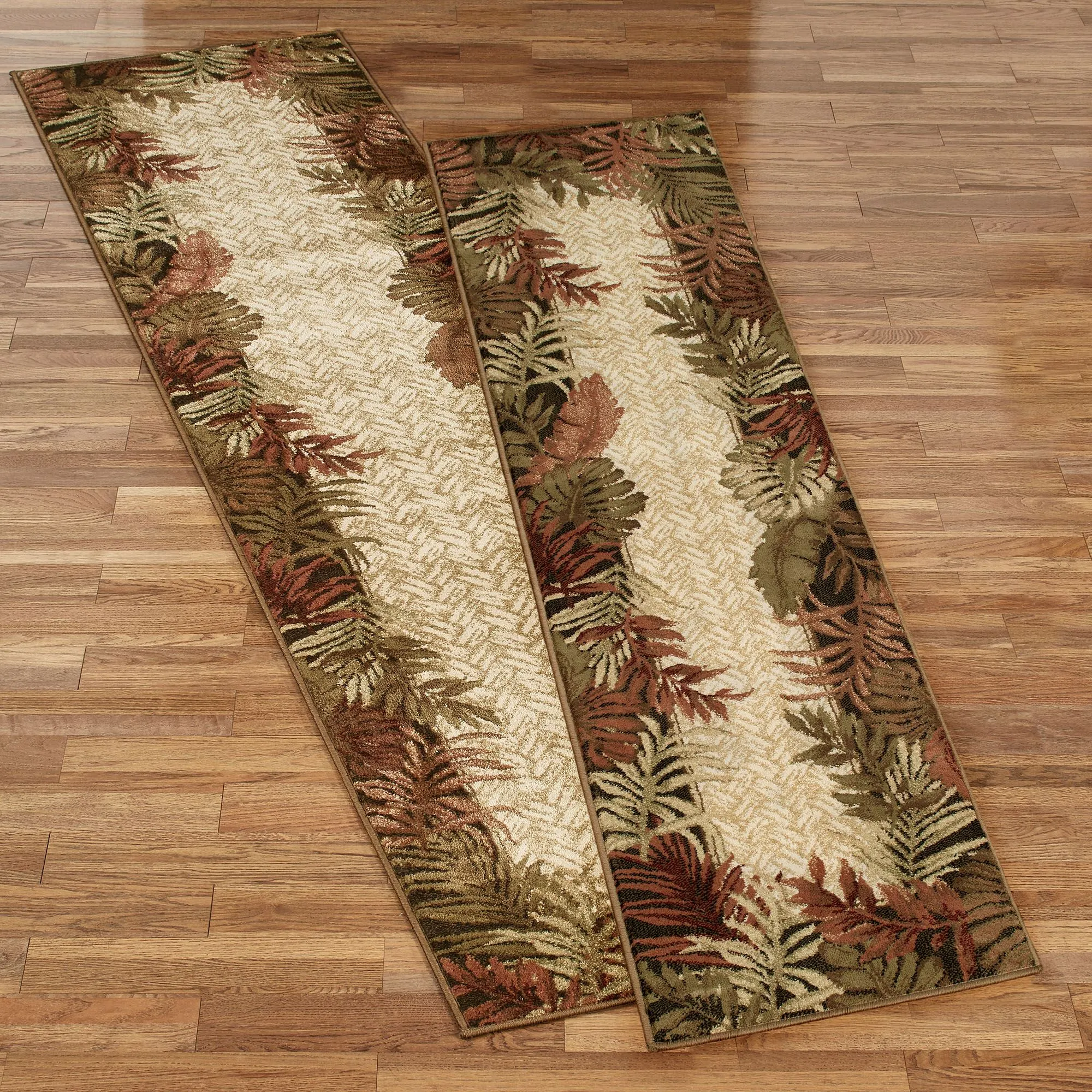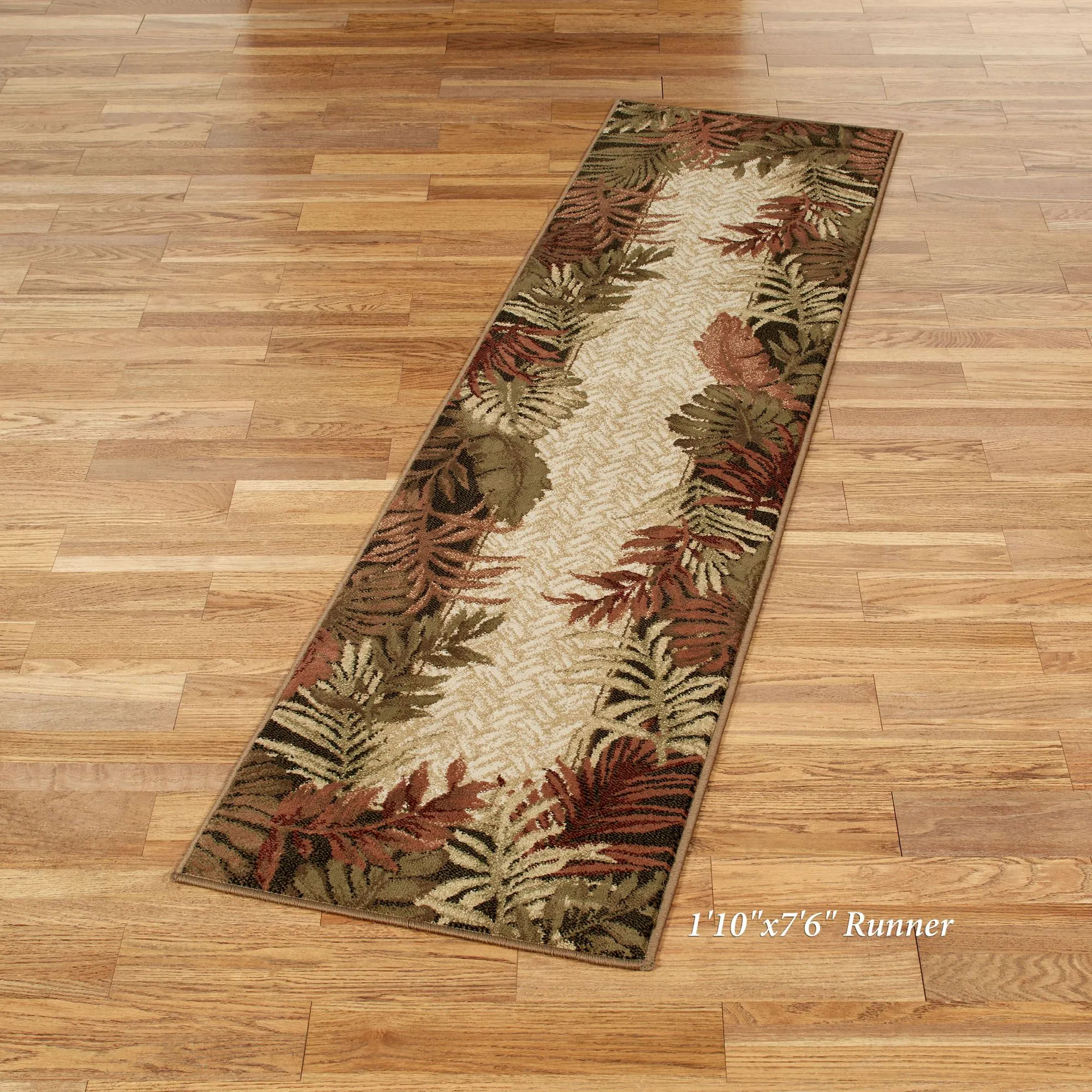 • Tropical rug runner has a foliage-design border