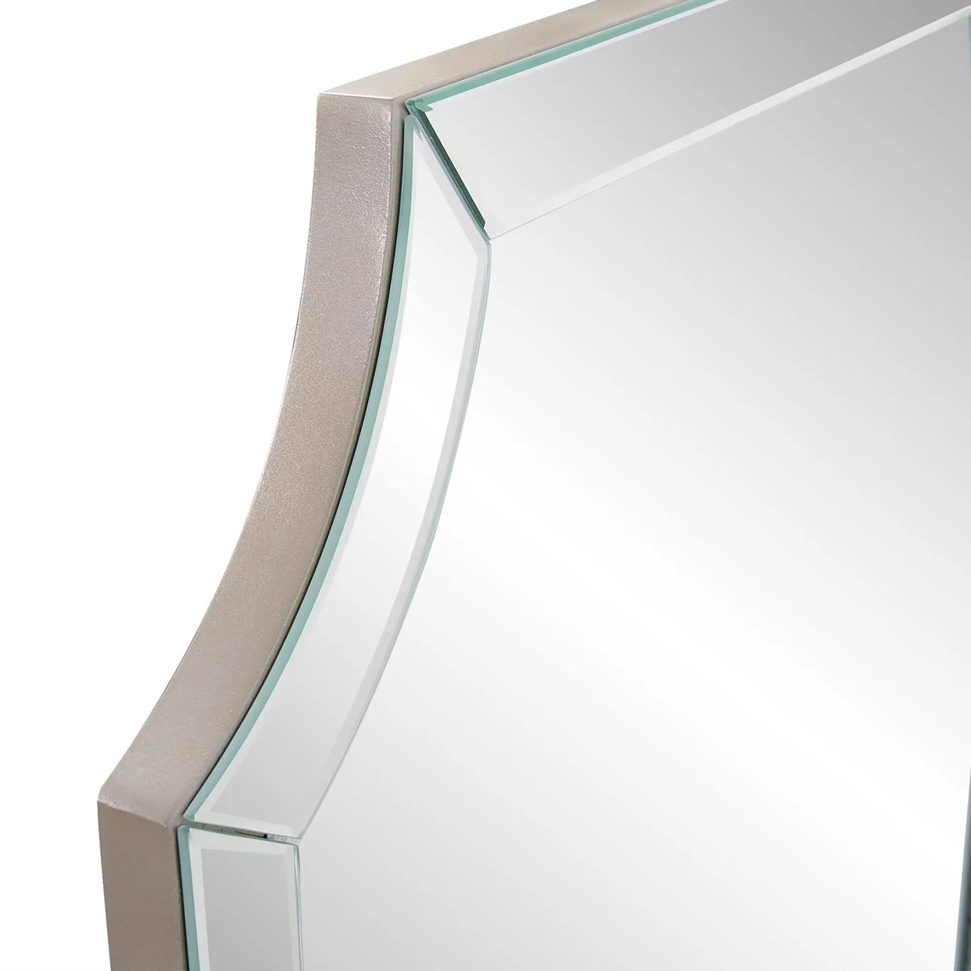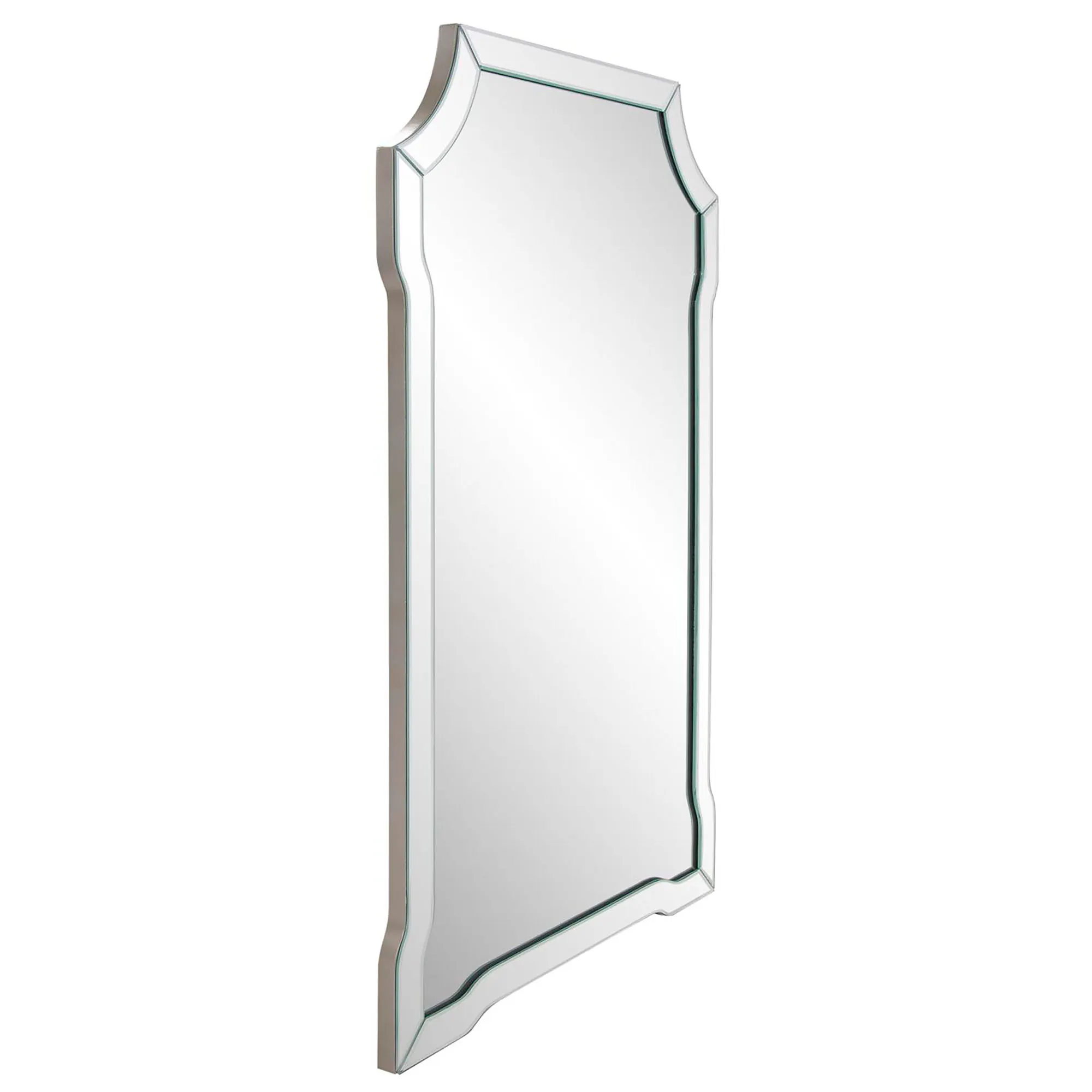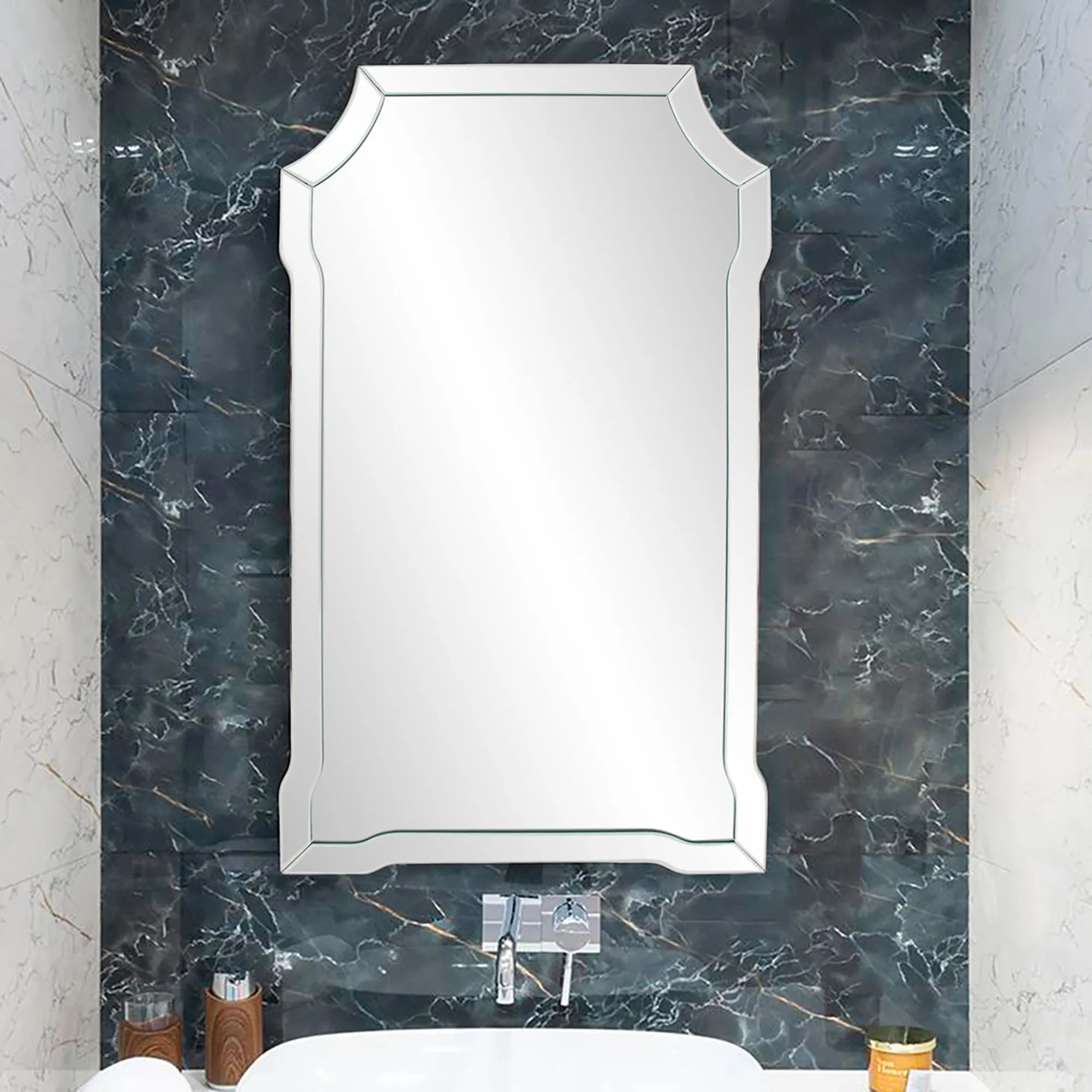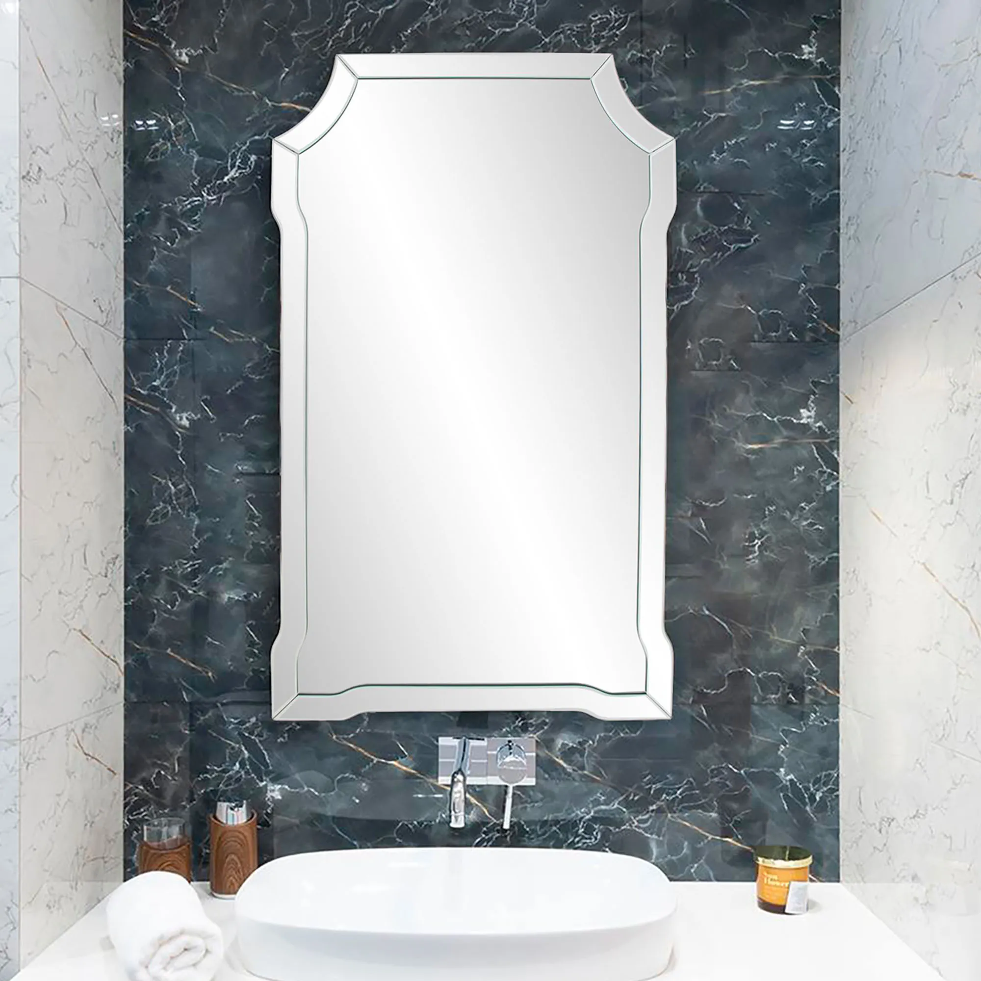Classic and modern styles blend to create the bold Belham Wall Mirror. With intriguing angles, the clear glass mirror features a thick beveled frame design with elegant curves and crisp corners. With silver wooden backing, the wall mirror measures 24"Wx1"Dx40"H and weighs approx. 28 lbs.