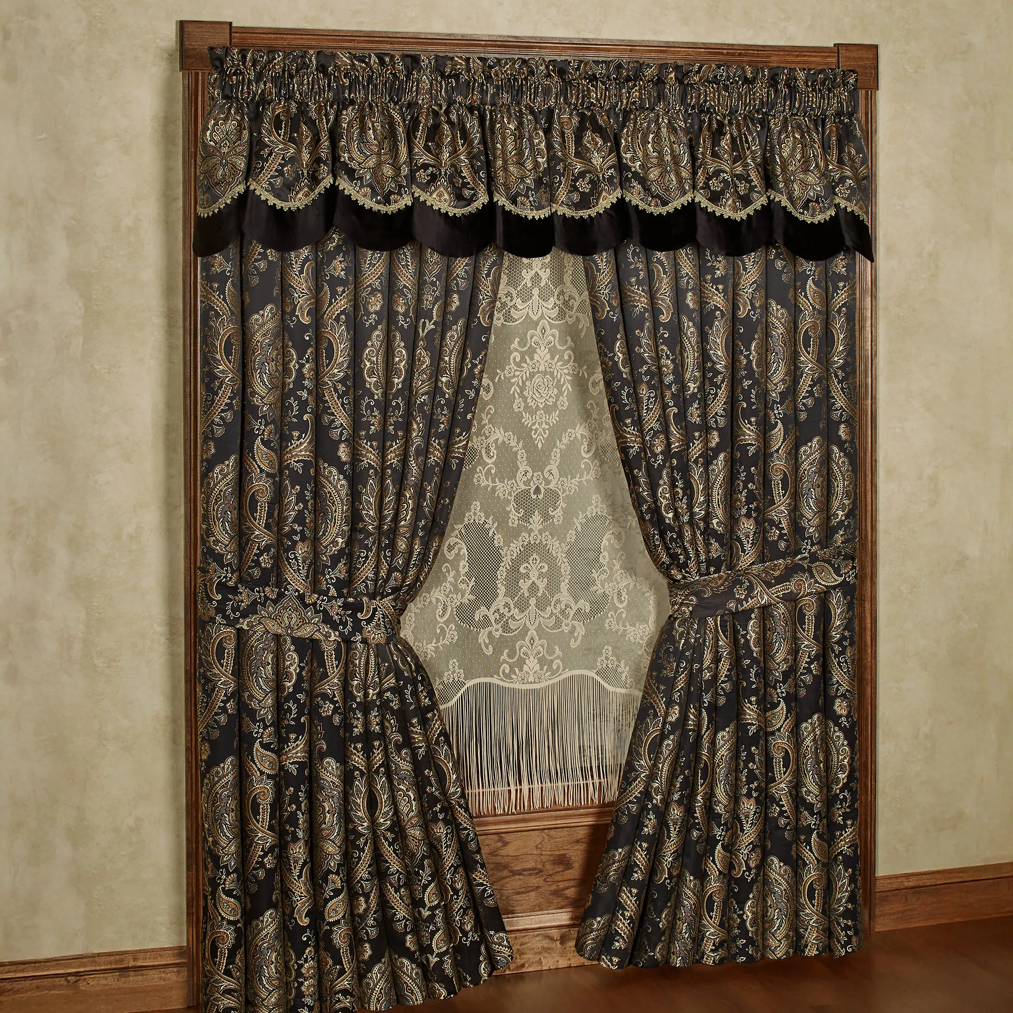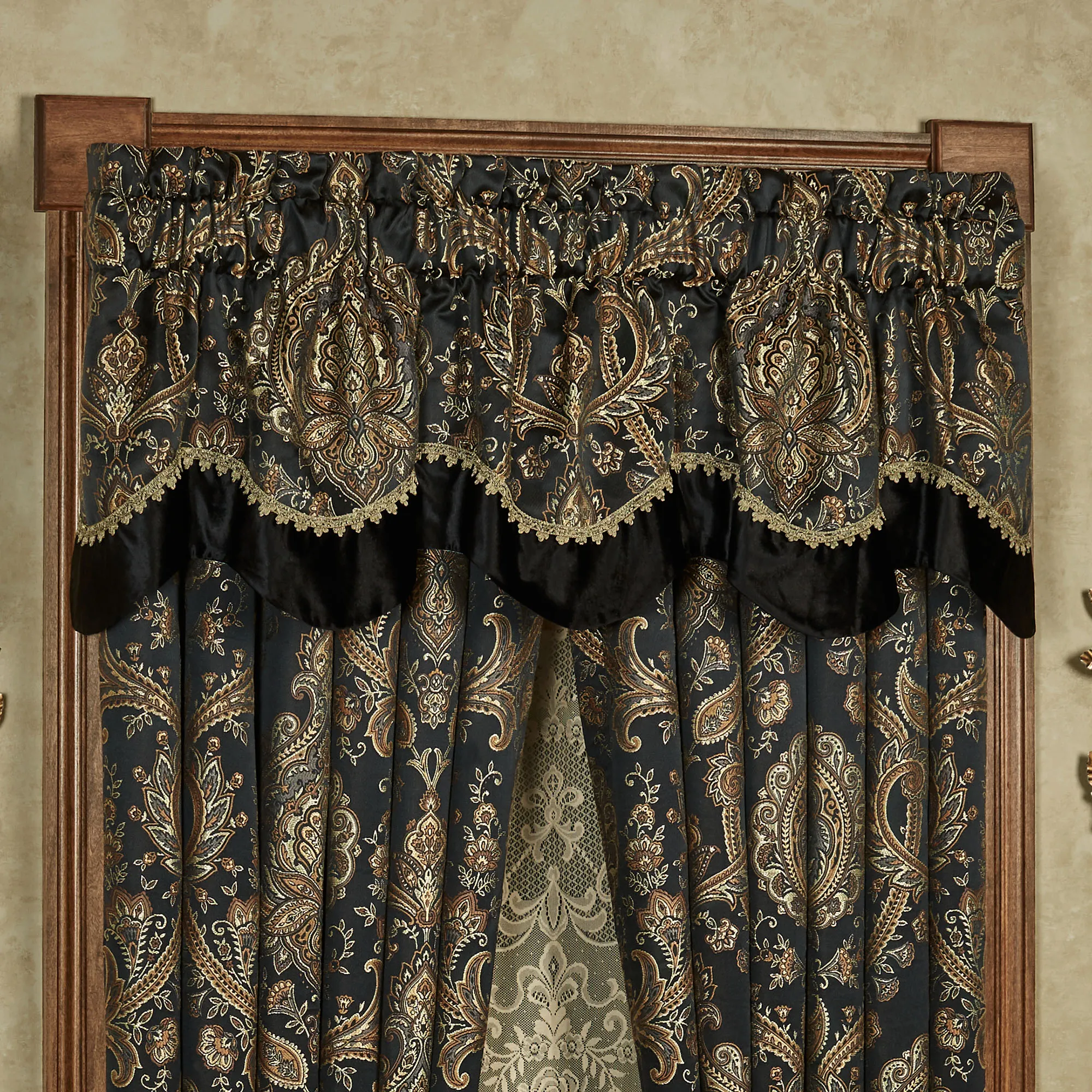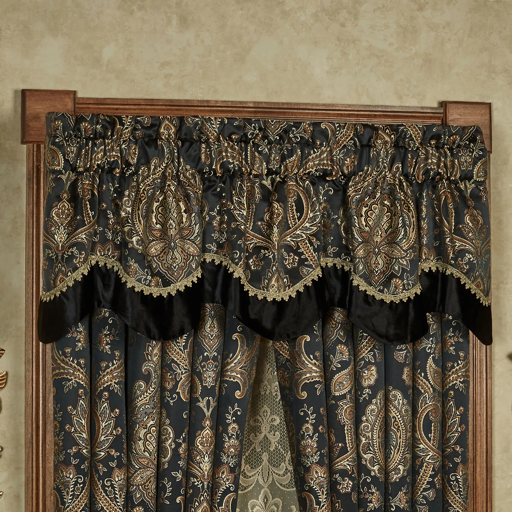 Bellevue Black Medallion Scalloped Valance Window Treatment