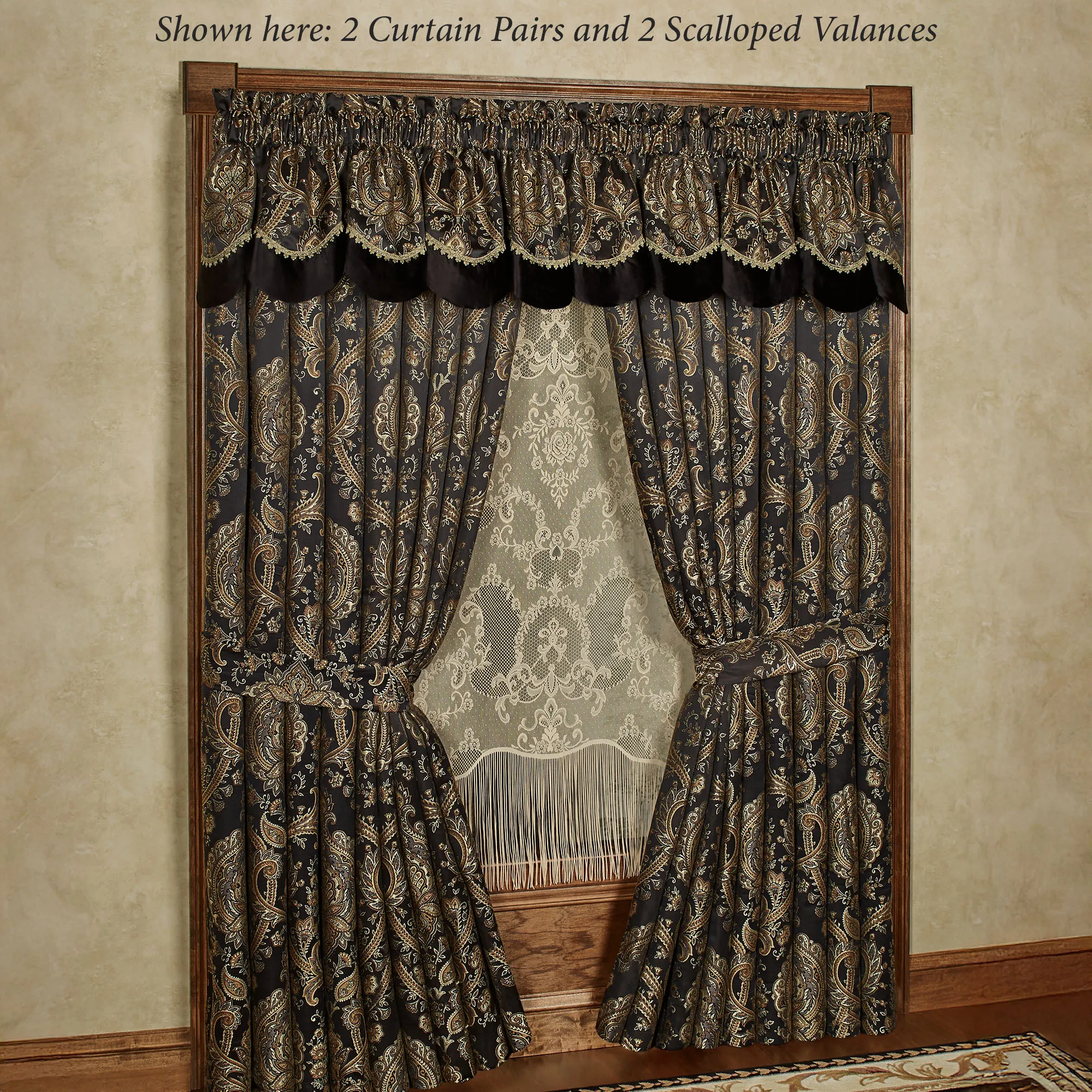 • Shown: 2 Wide Curtain Pairs & 2 Scalloped Valances