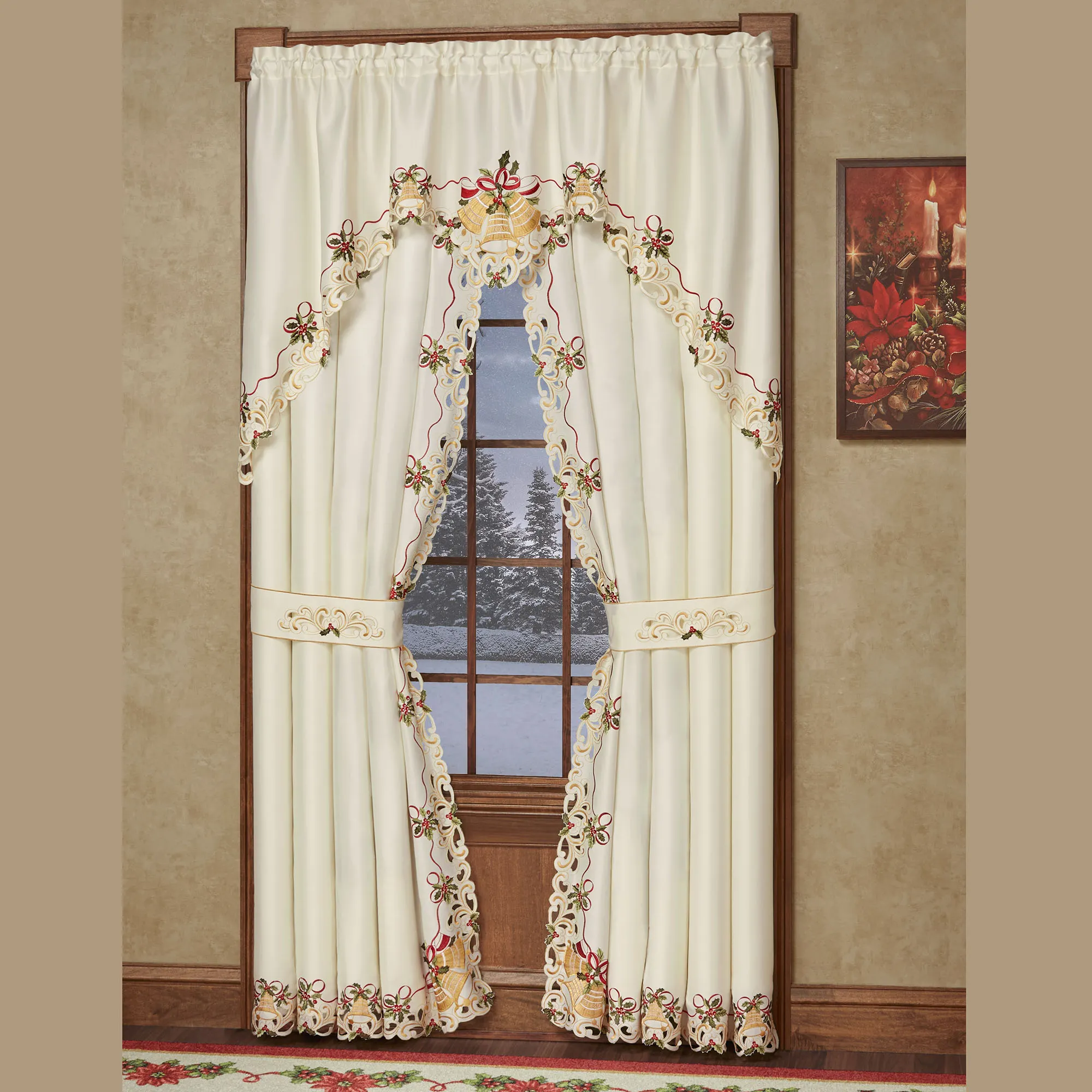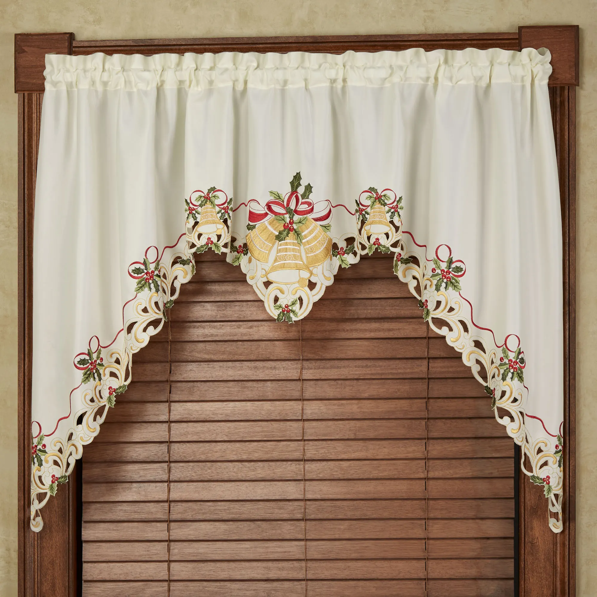 Bells Are Ringing Embroidered Holiday Swag Window Treatment