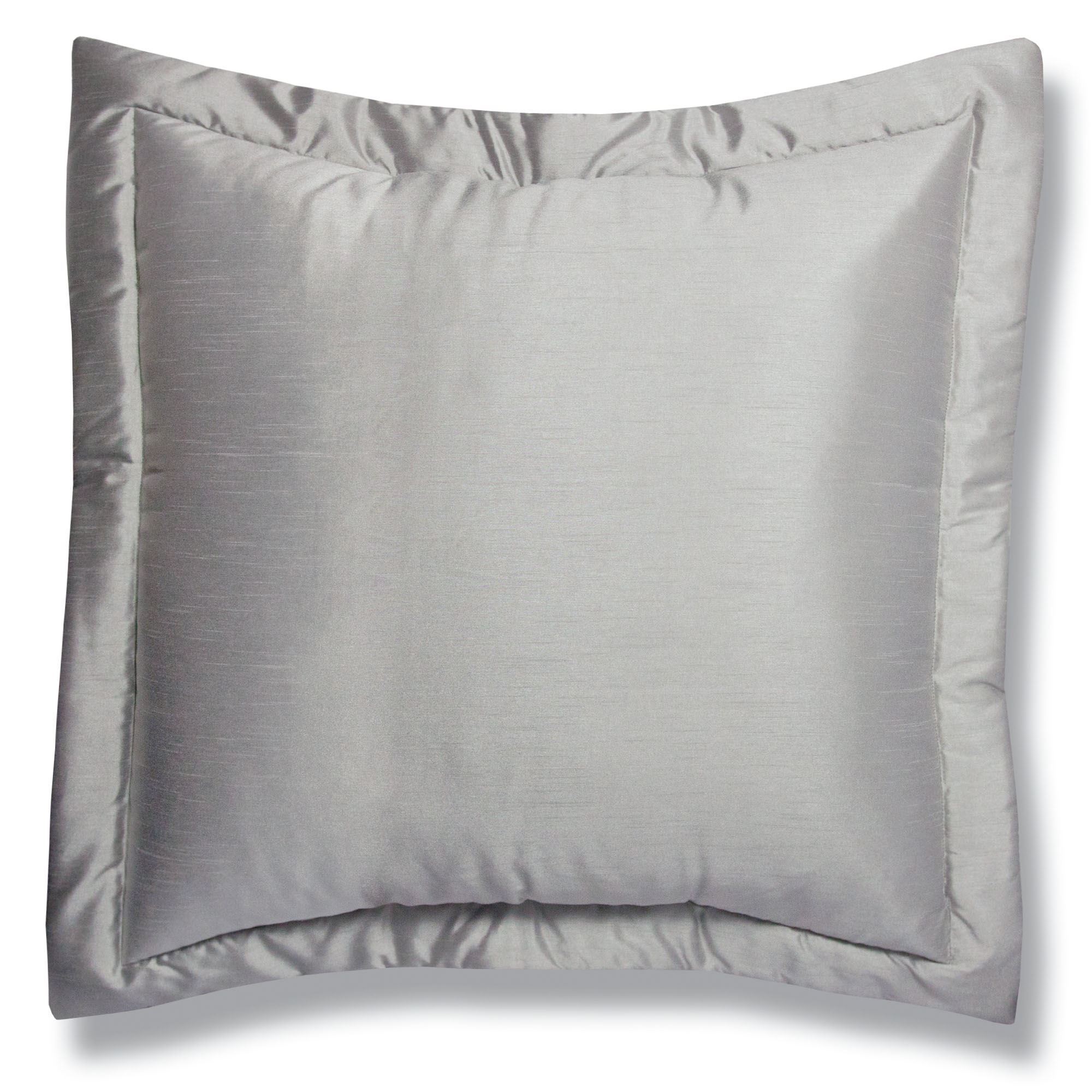 The Solid Silver Faux Silk European Sham is flanged and has a French back closure.