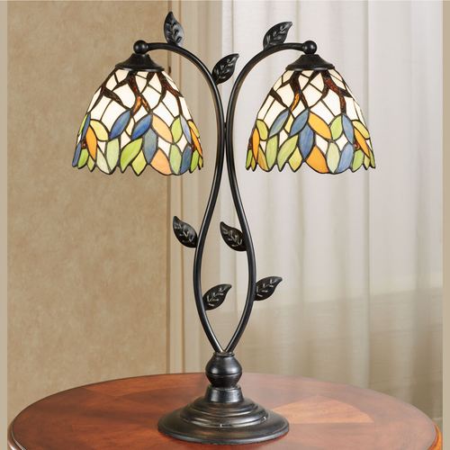 Bergamo Leaves Tiffany Style Stained Glass Double Shade Table Lamp