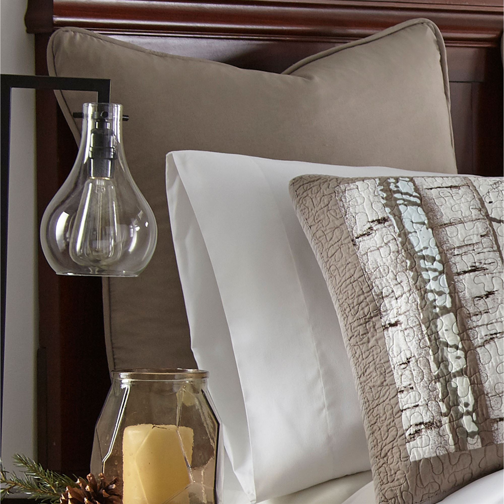 Lose yourself among the Birch Forest and add a wild touch to your dreams. By Donna Sharp(R), the soft cotton ensemble features printed visions of birch trees in natural streaked hues of almond, taupe, light taupe, chestnut, pastel blue, and dark silver gray. Soothing solid dark silver gray and gray framing makes each rustic design pop. Vermicelli quilting completes all except the Bedskirt and European Sham.