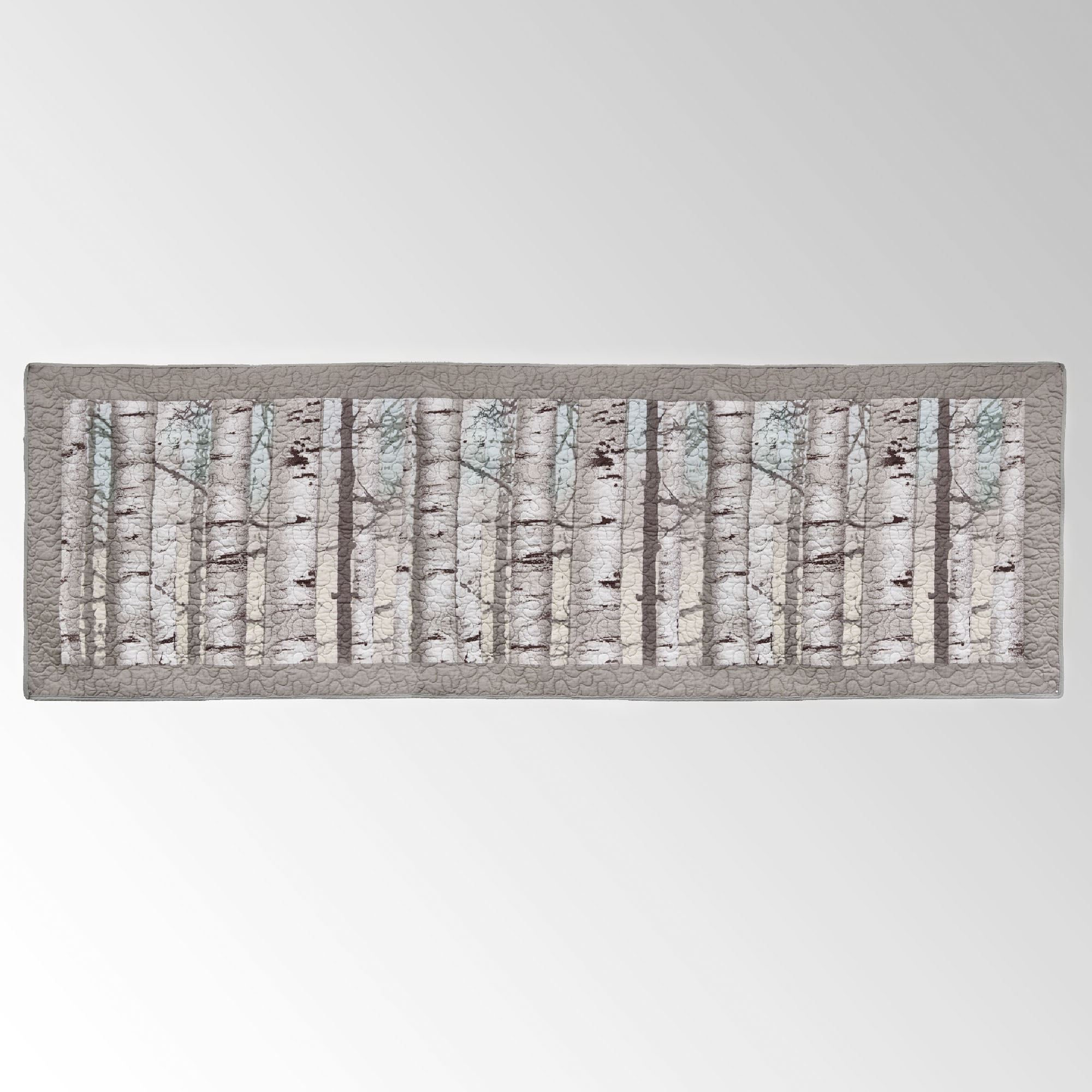 Quilt features framed birch trees, bound edges, and a dark silver gray back. Choose Twin, Full/Queen, or King.