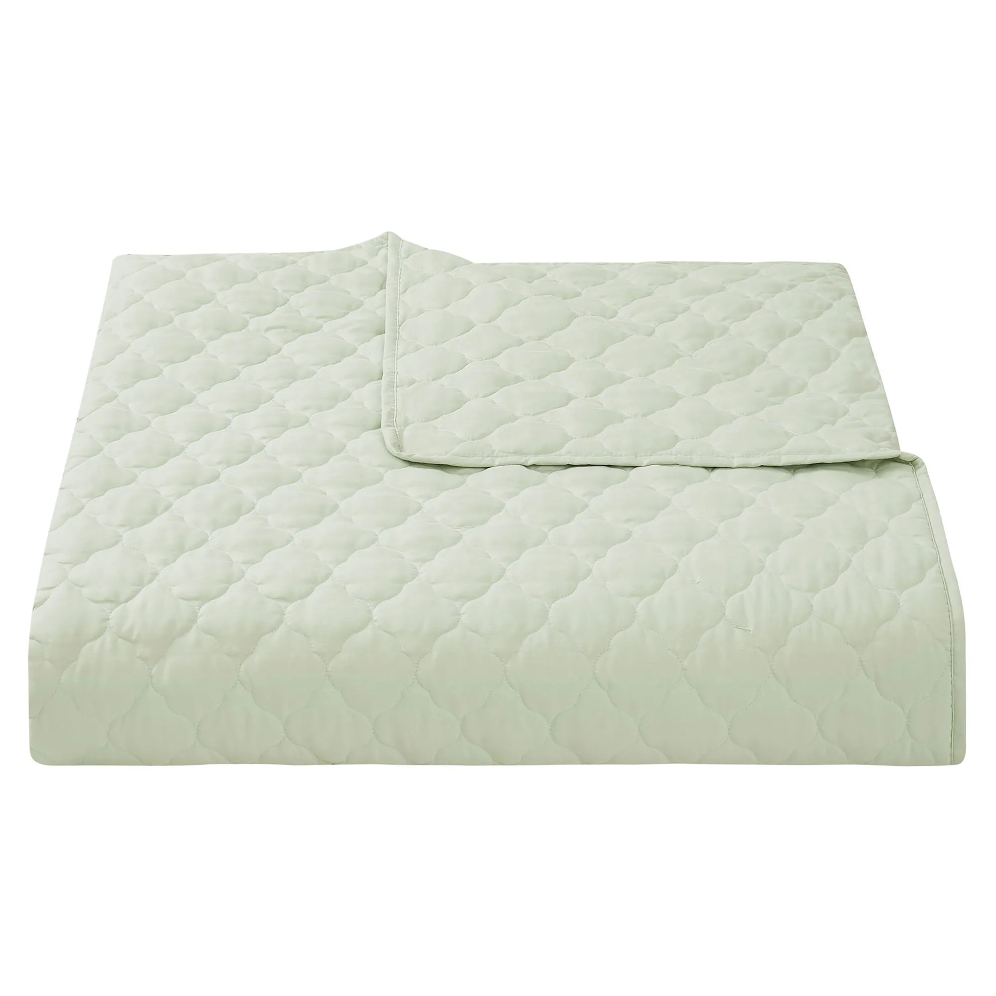 The abundant set, breathable polyester fill, and lightweight construction keep you cozy year round without overheating. Solid pale green elements, with quatrefoil quilting, add a charming textured element.
