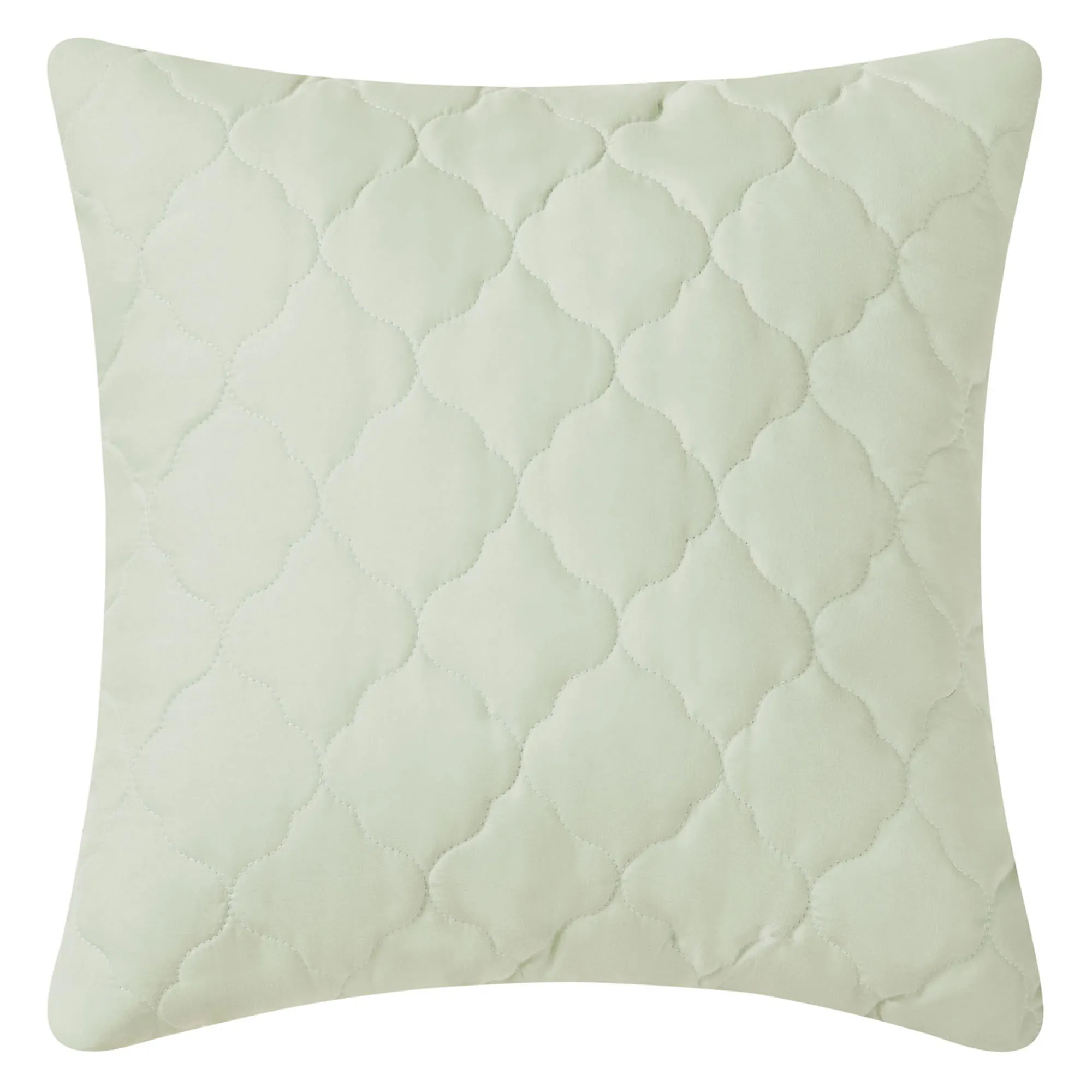 • Included quilt and pillow are solid pale green with quilting