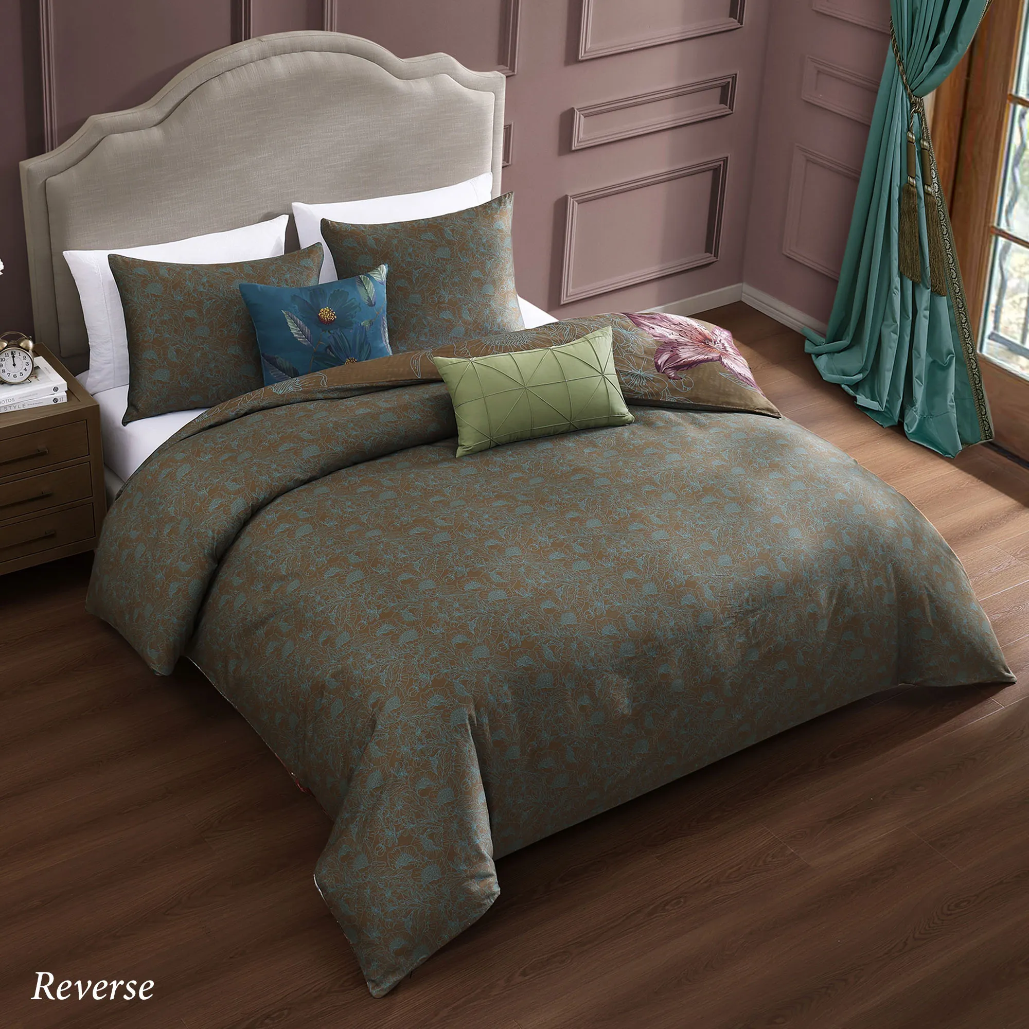 Birds Delight Reversible Brown Floral 5 pc Comforter Bed Set