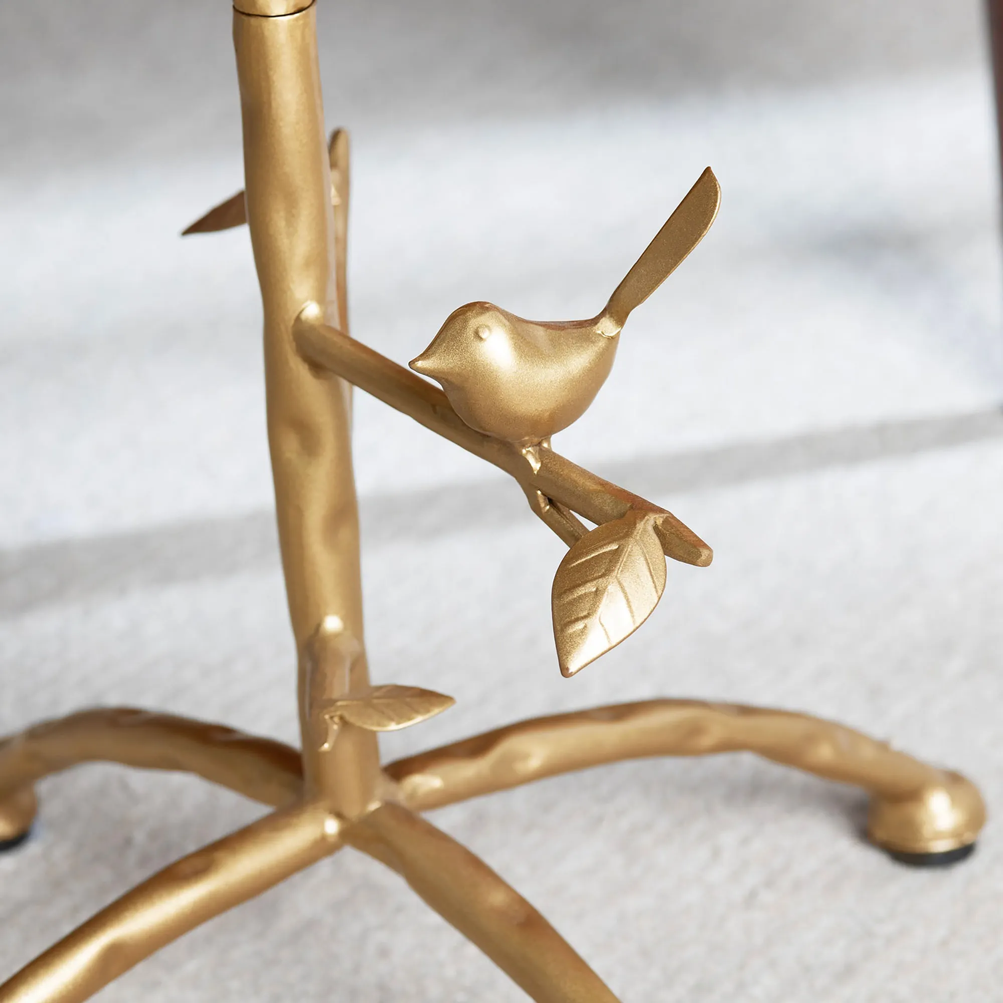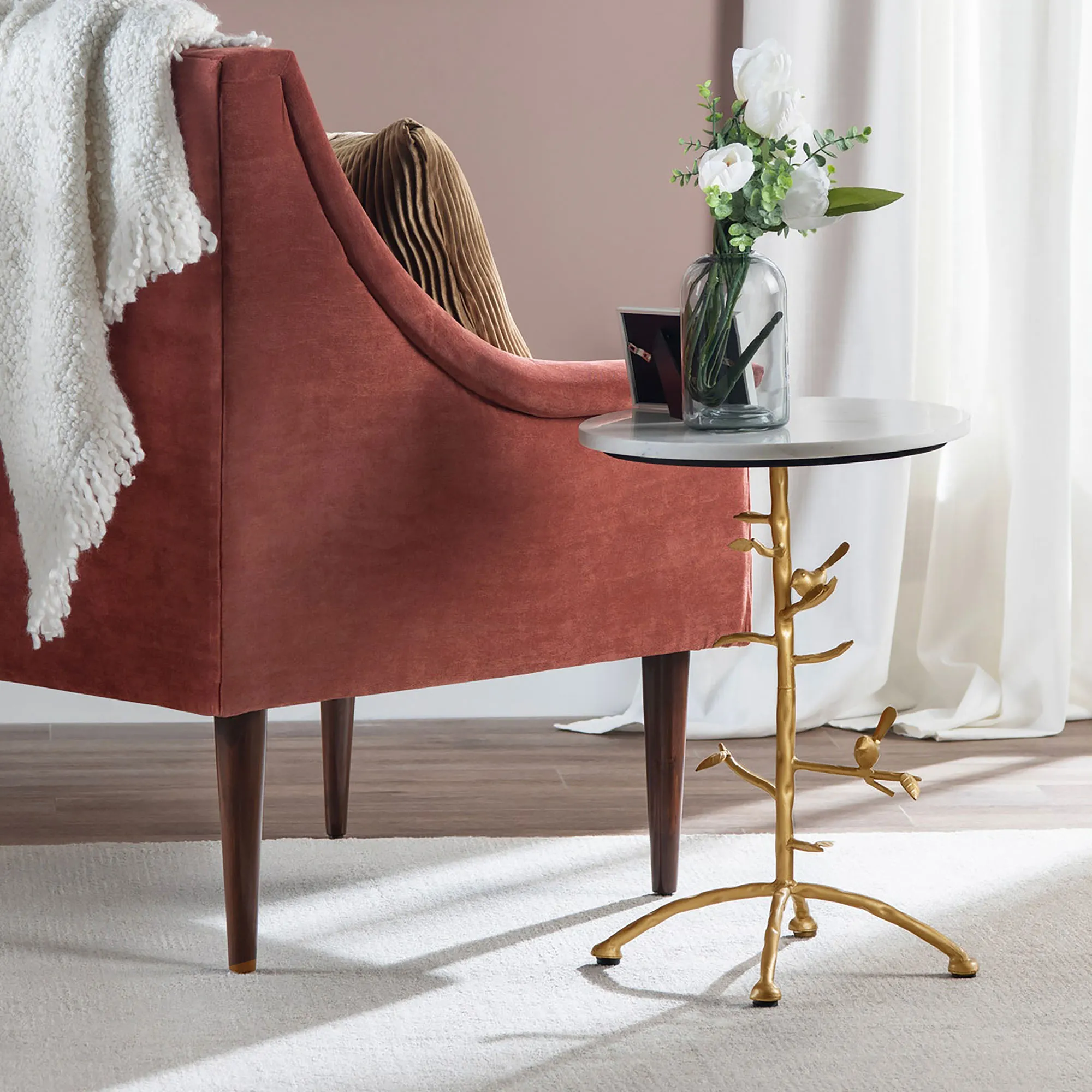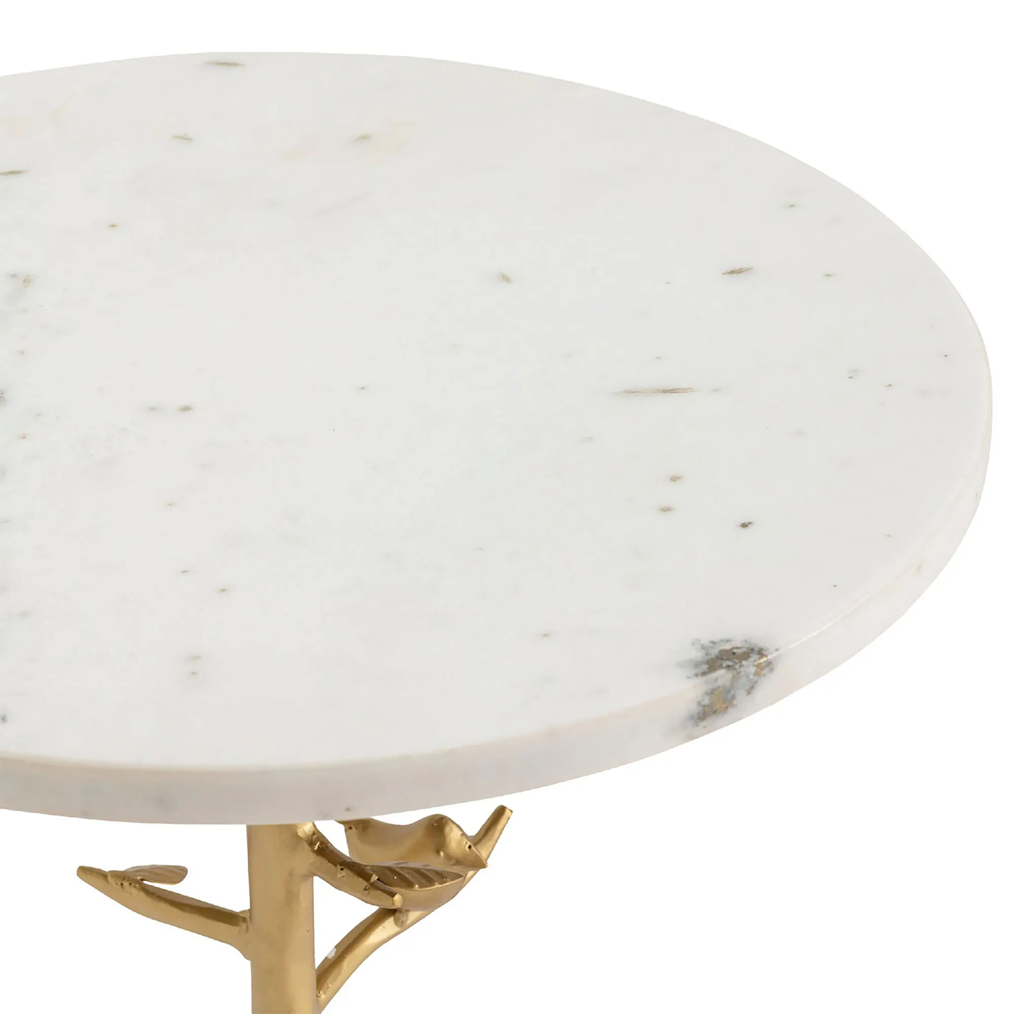 Birds in Branches Gold Metal Accent Table with Round White Marble Top