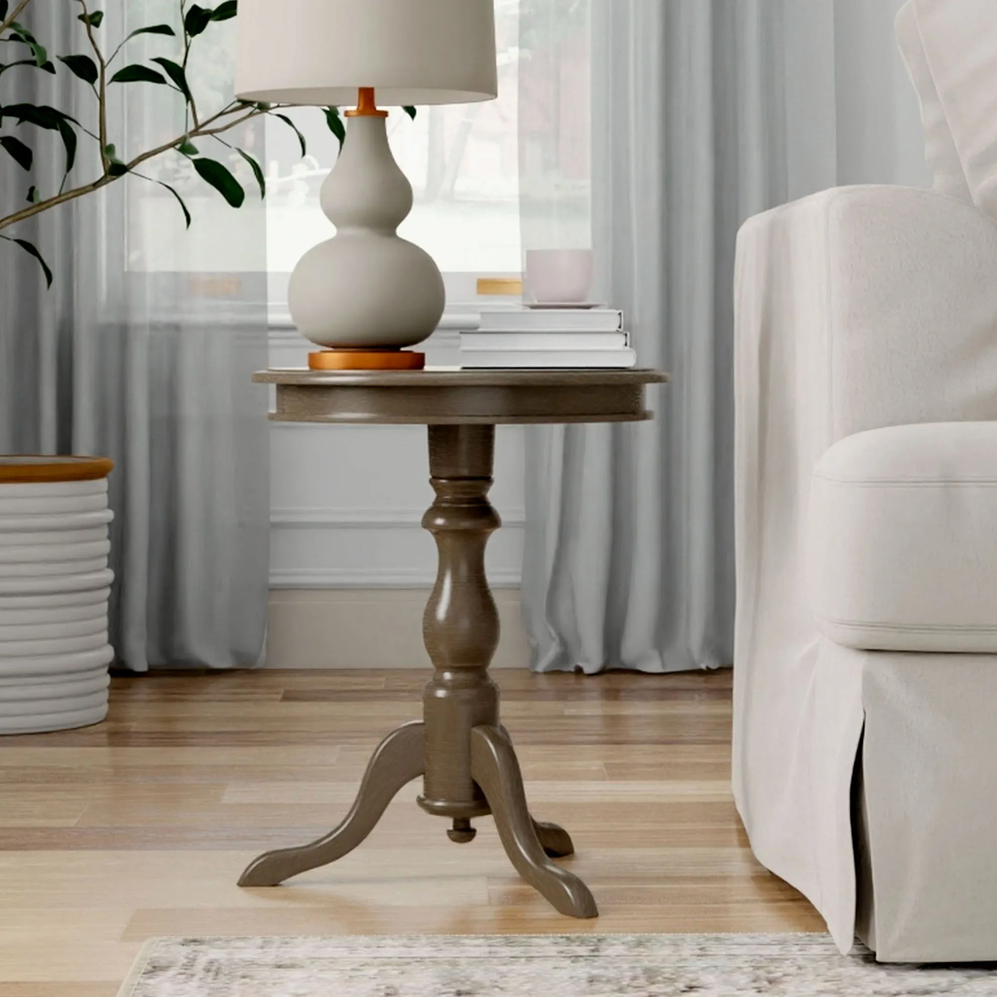 Bishop Taupe Pedestal Style Round Wooden Accent Table