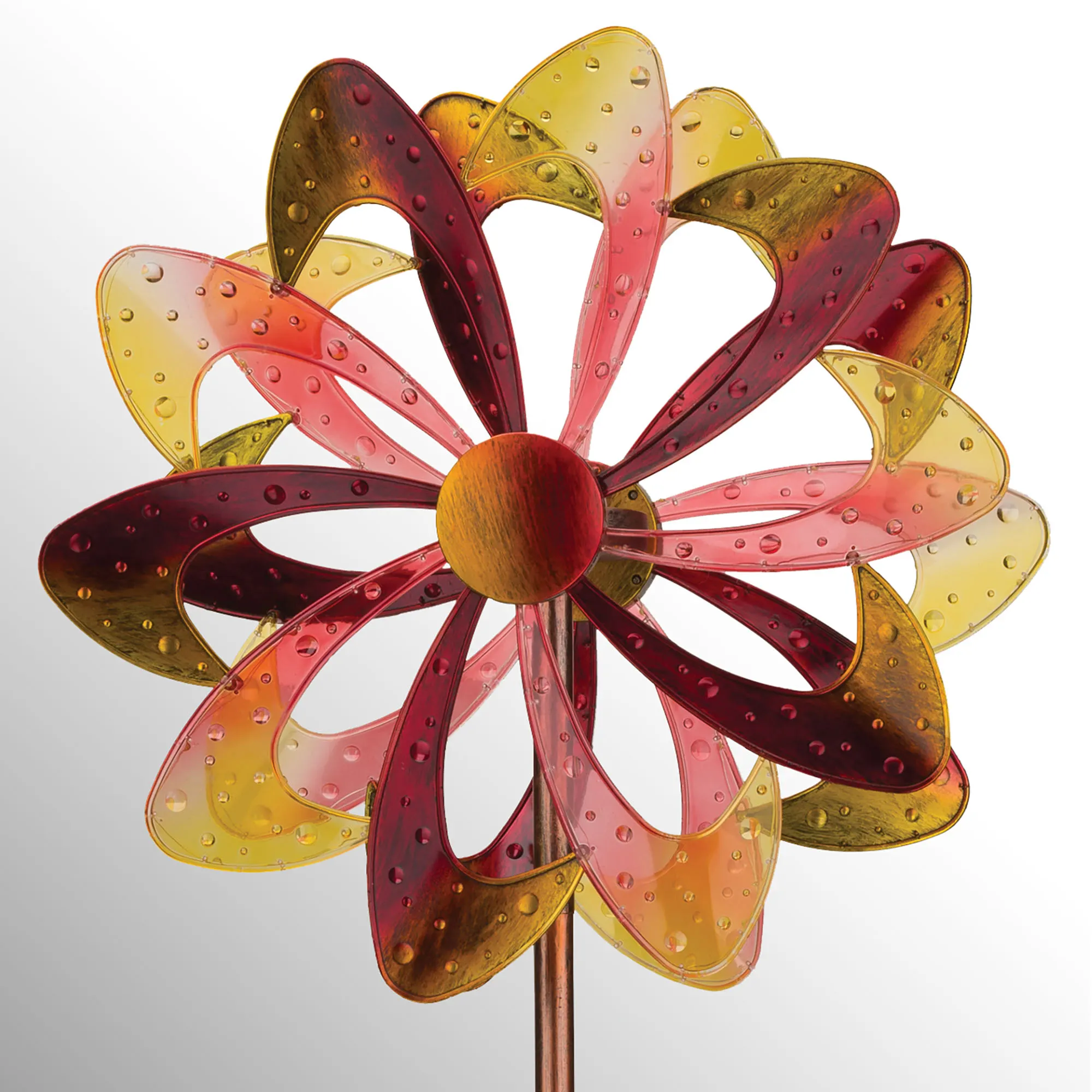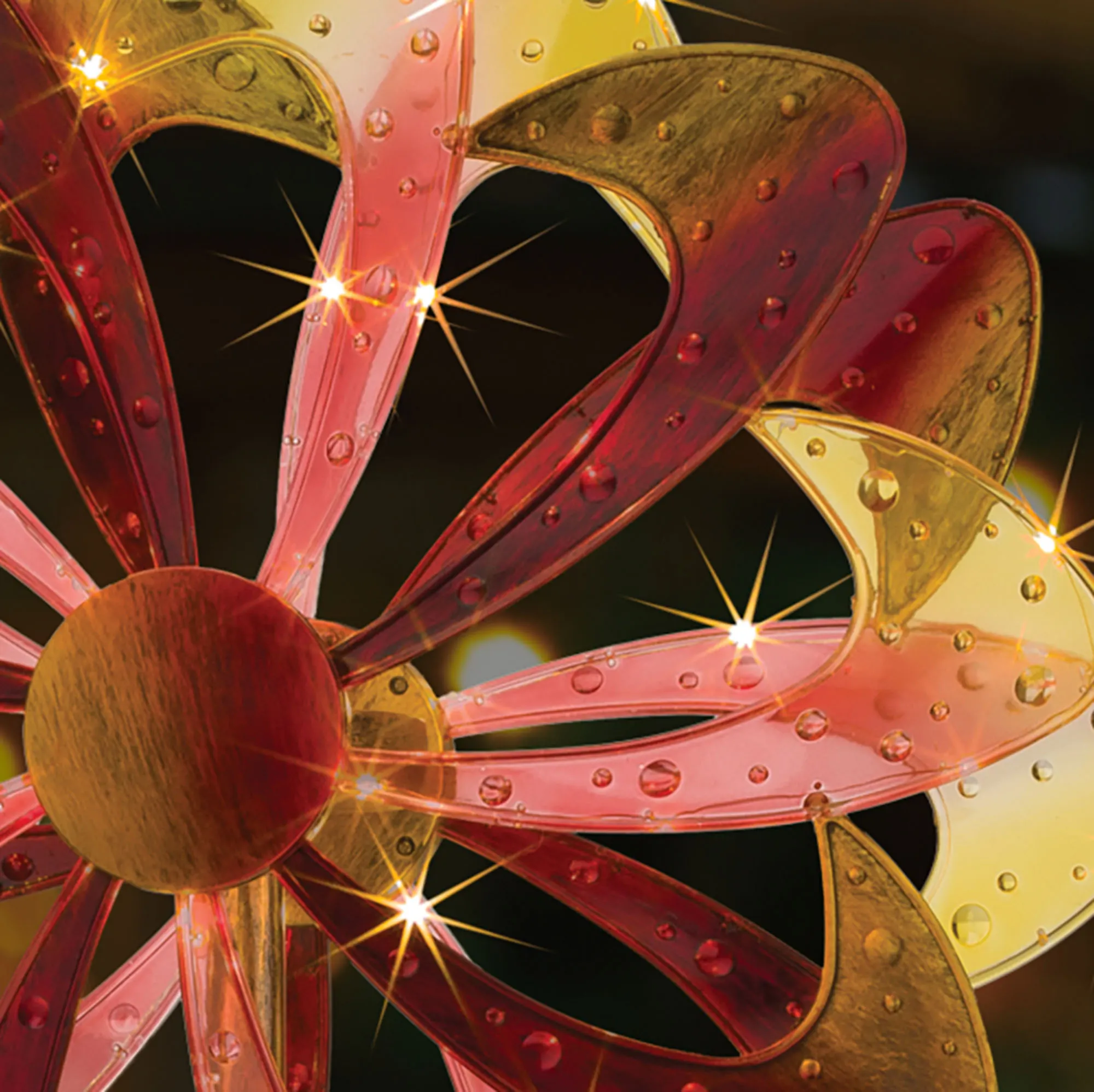The Blaze Rotating Solar Wind Spinner is made of acrylic and metal.