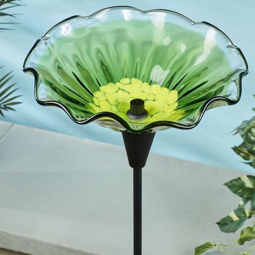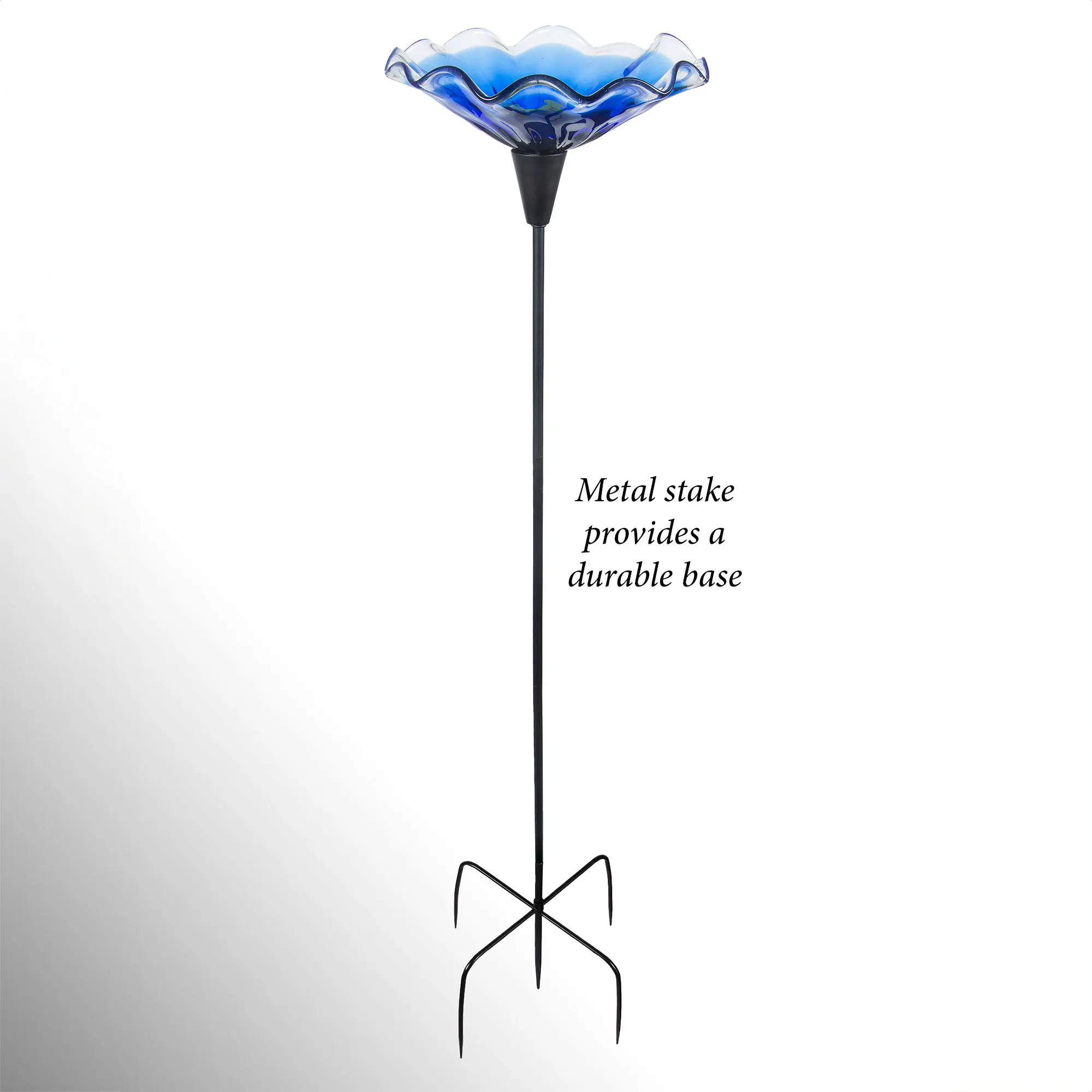 Bloom Flower Shaped Handblown Favrile Art Glass Bird Feeder with Stake by Dale Tiffany