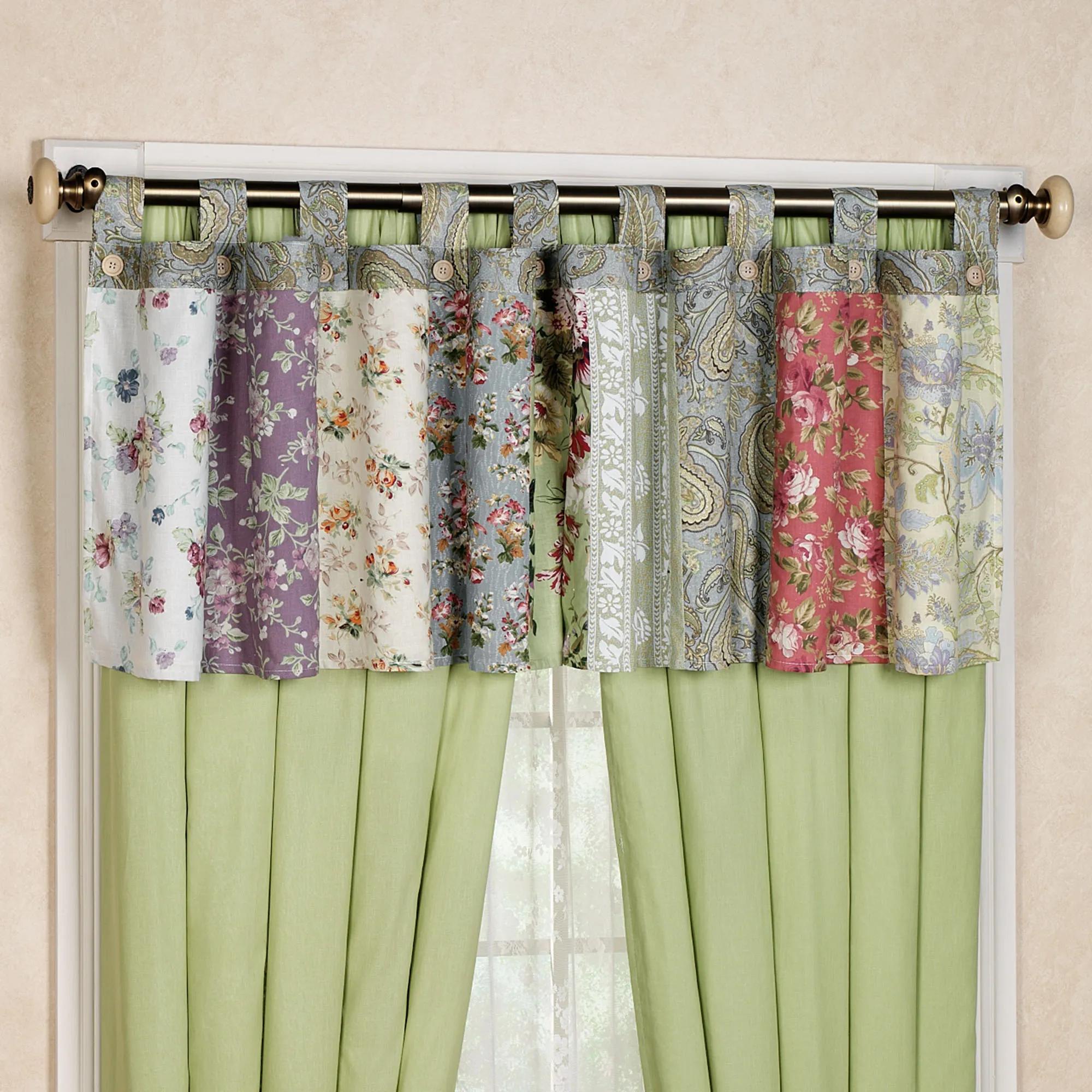 Window Treatment: Patchwork Tab-Top Valance, 84"Wx21"L; 3" tab tops.