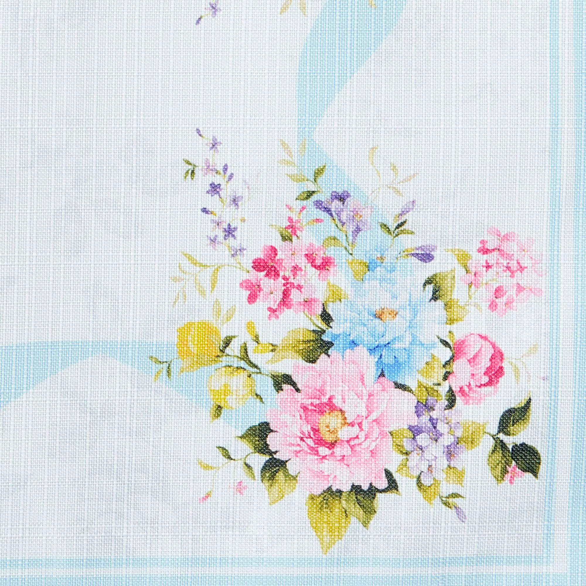 Nothing looks sweeter in your dining area than a beautiful Blooming Rose. These polyester table linens have lovely blooms with greenery, ribbons, and subtle floral outlines on a white background. Colors include pink, purple, blue, yellow, green, and baby blue. Edges are hemmed. Choose Napkin Set of 8, Tablecloth, or Table Runner. Machine washable. Imported.