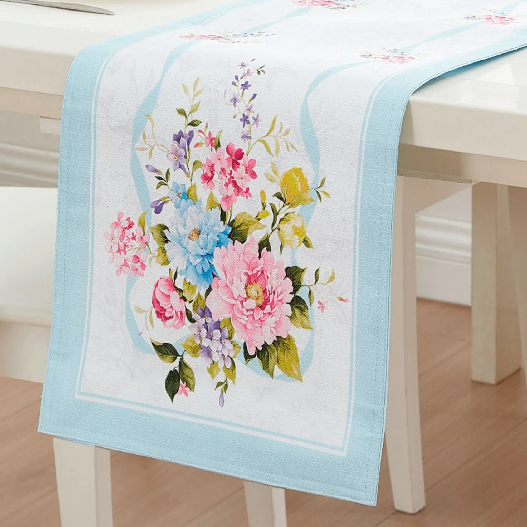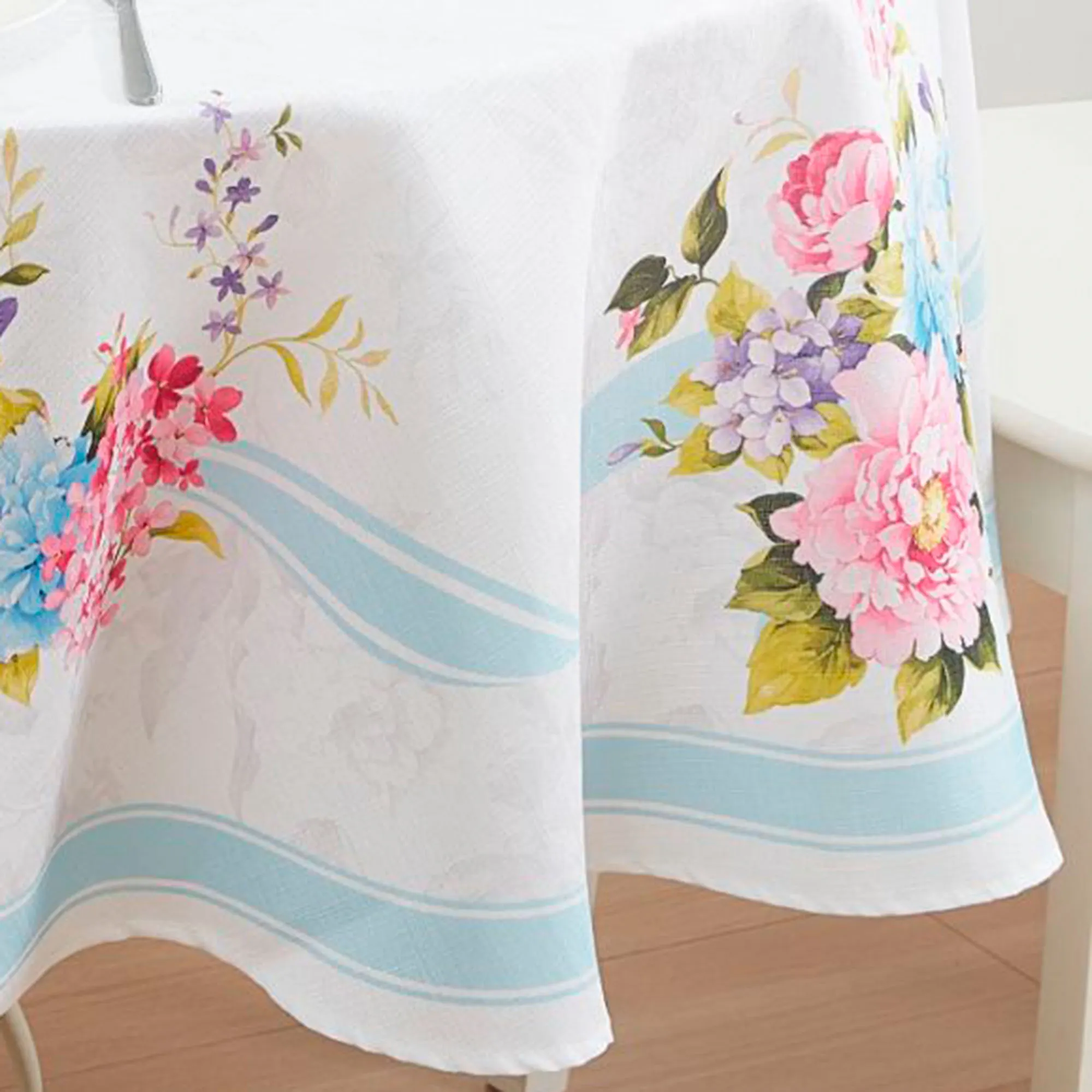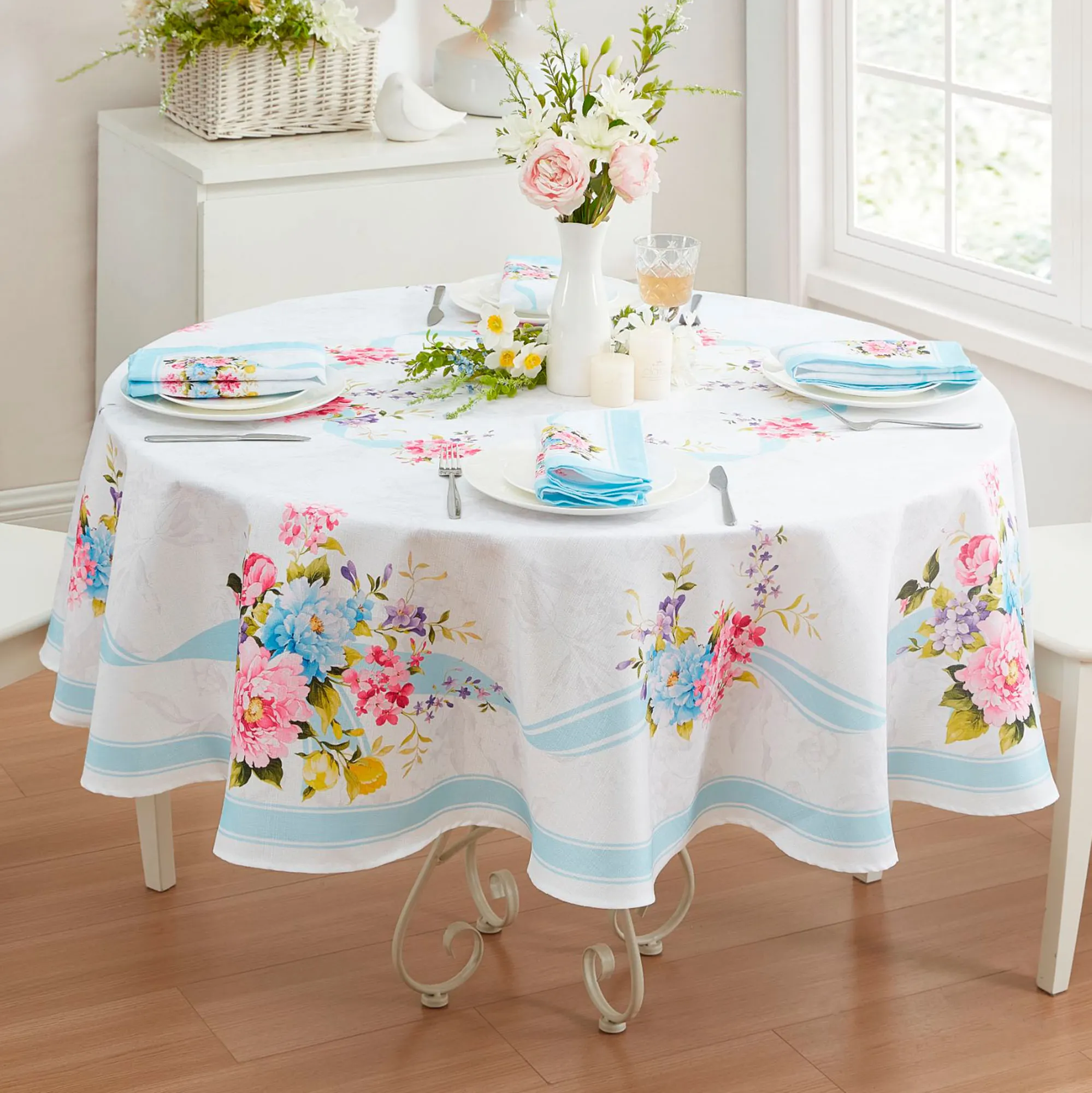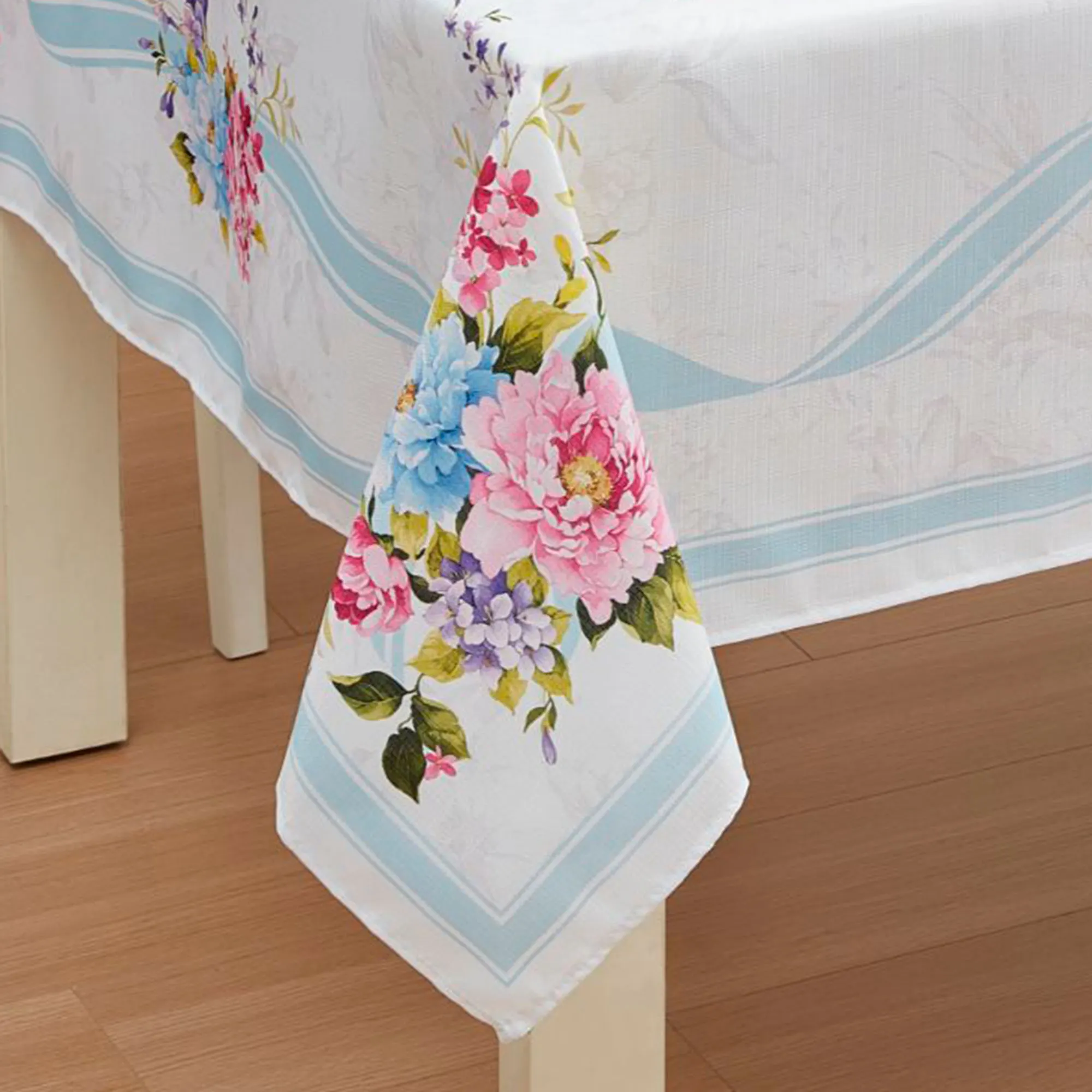 • Floral table linens are machine washable