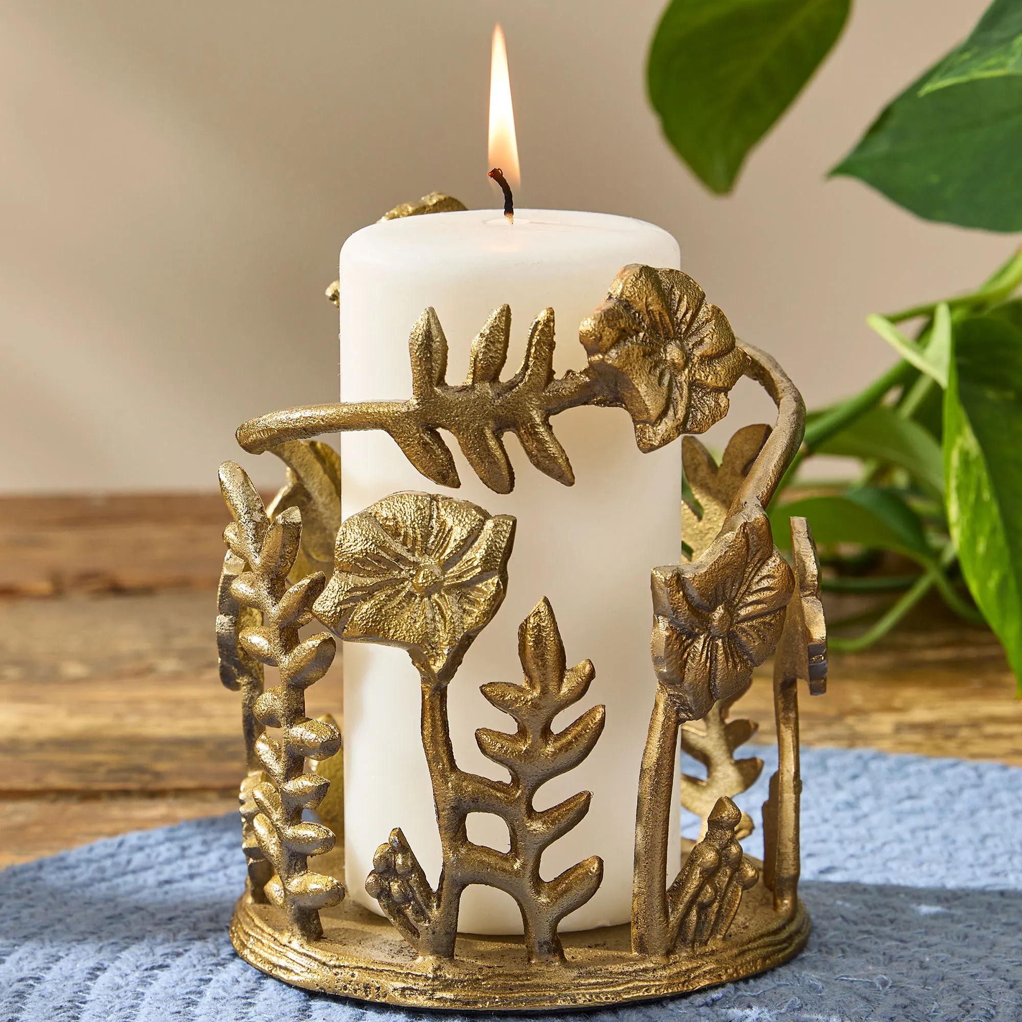 Bloomington Gold Floral Pillar Candleholder