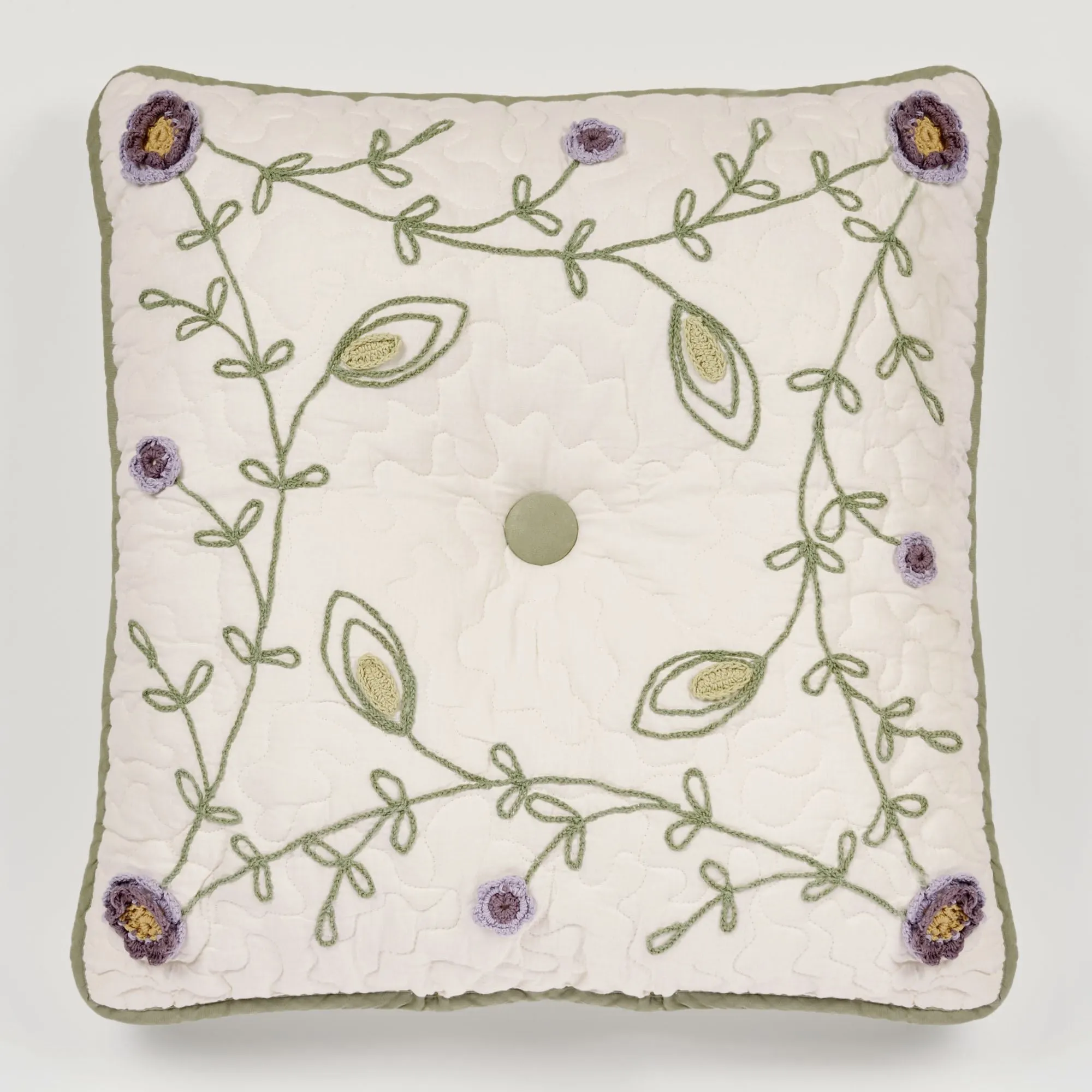 Blossom Quilted Chainstitch Embroidered Floral Decorative Pillows