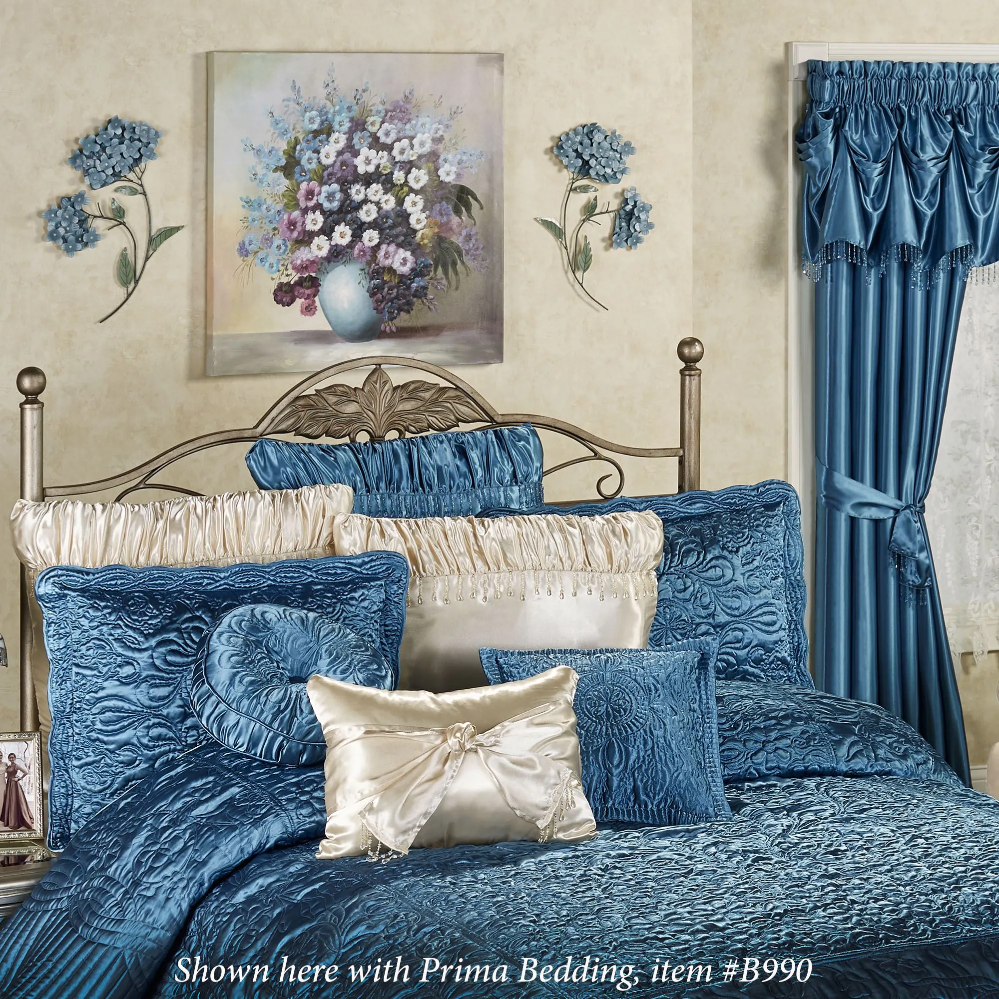 Enjoy summer floral blossoms year round with the handcrafted Blue Hydrangea Metal Wall Sculpture Set. Handpainted metal wall sculptures each have two flowering blooms in pearlized shades. One wall sculpture curves right, and the other curves left. Due to the handcrafted nature of this item, slight variations may occur. Each is 14"Wx1.5"Dx20"H.