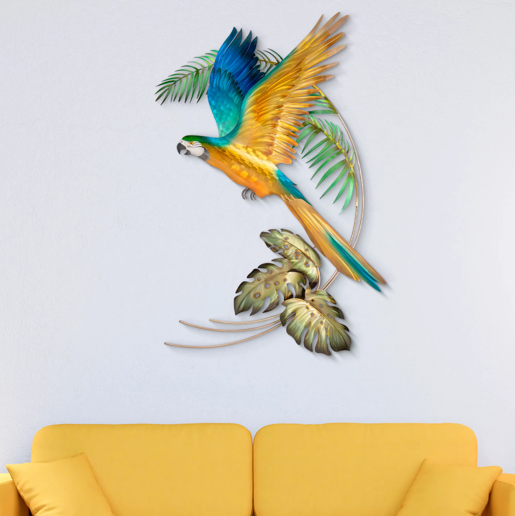 Blue Macaw Parrot Flying Indoor Outdoor Stainless Steel Wall Sculpture