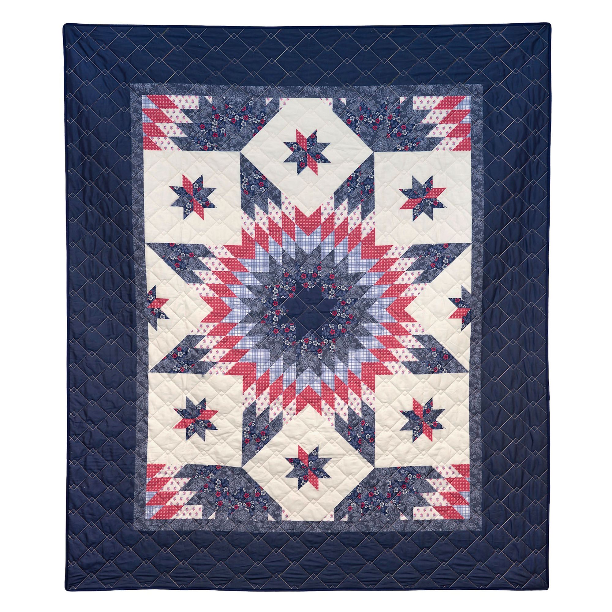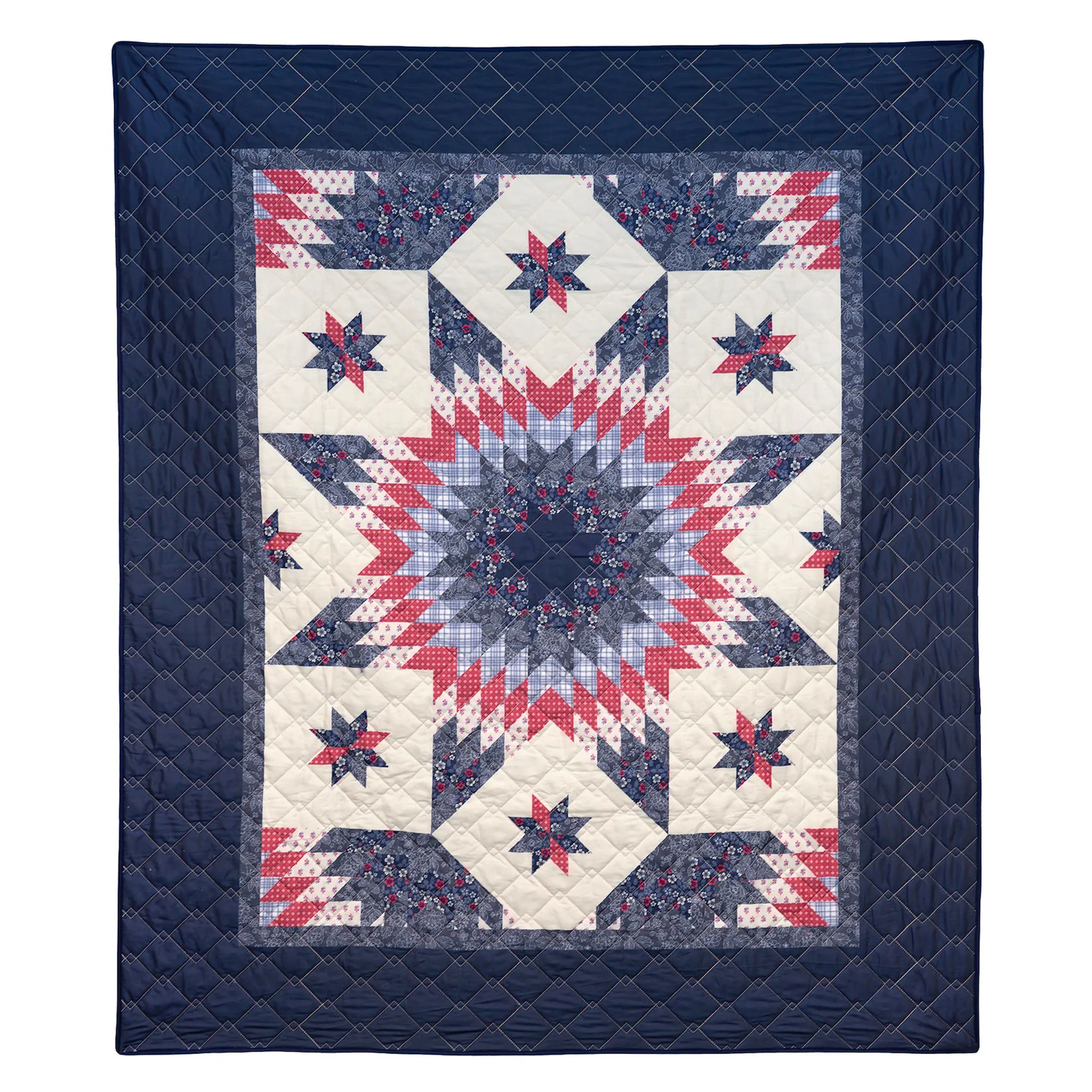 The Bluefield Star Bedding shines with a classic Americana charm. From Your Lifestyle(R) by Donna Sharp(R), the printed polyester ensemble features timeless eight-pointed star designs surrounded by bursting patterns and solid accents. Iconic red, white, and blue hues fill the floral, plaid, and solid block designs to create a bold spirit. Unique geometric diamond quilting and bound edges complete each element.