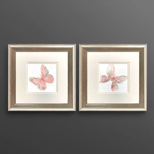 Blush Pink Pastel Butterfly Framed Print Wall Art Set