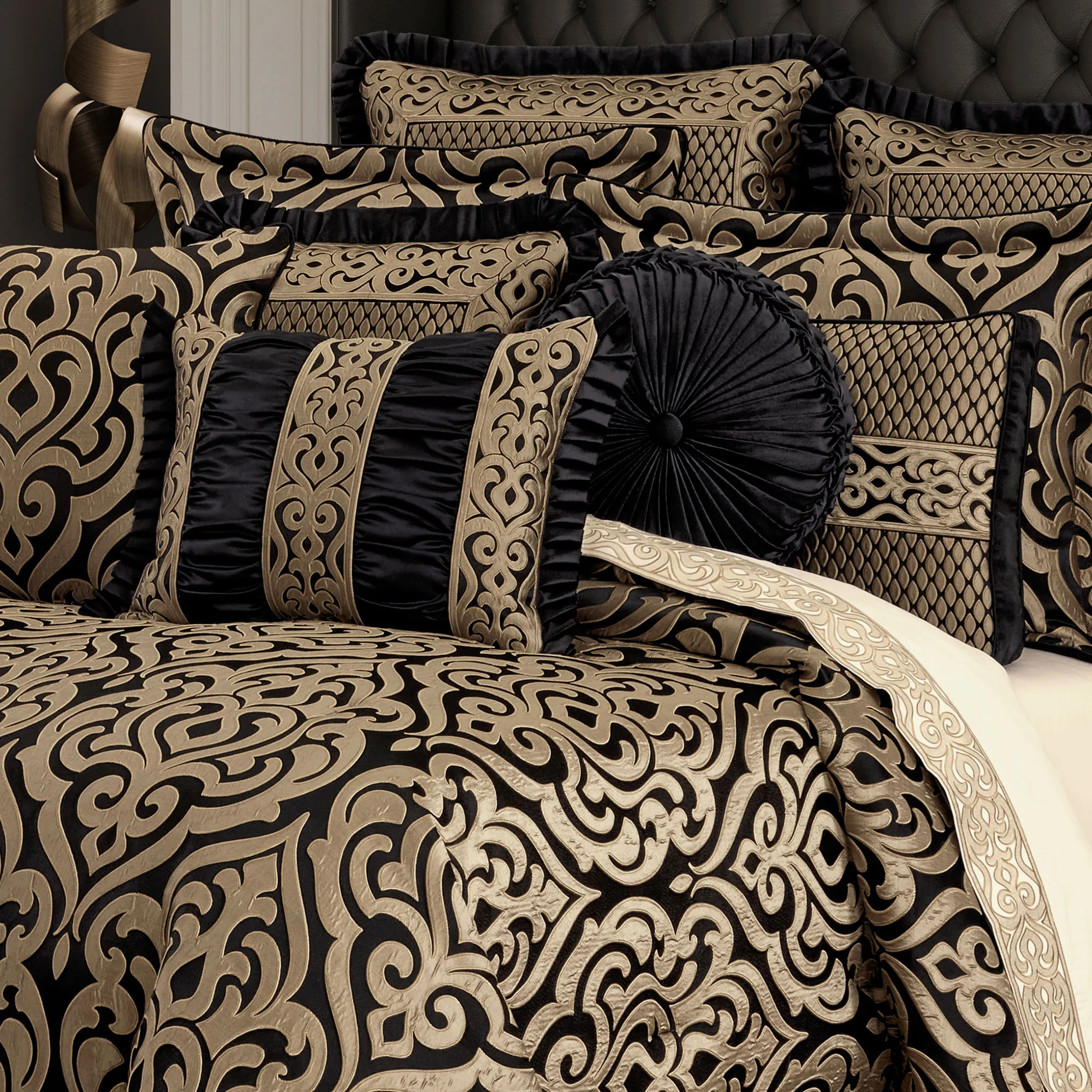 • Elegant black and gold comforter bedding