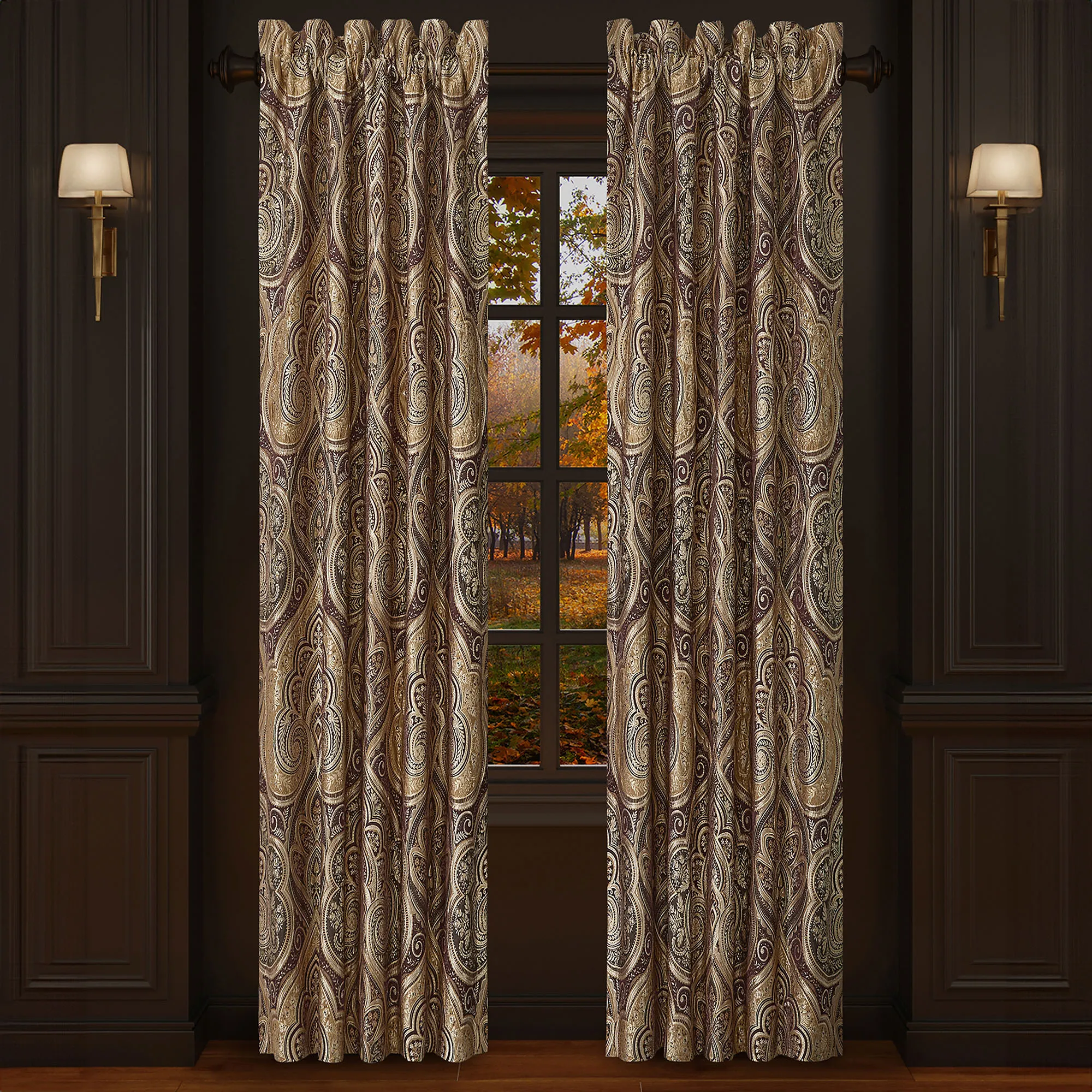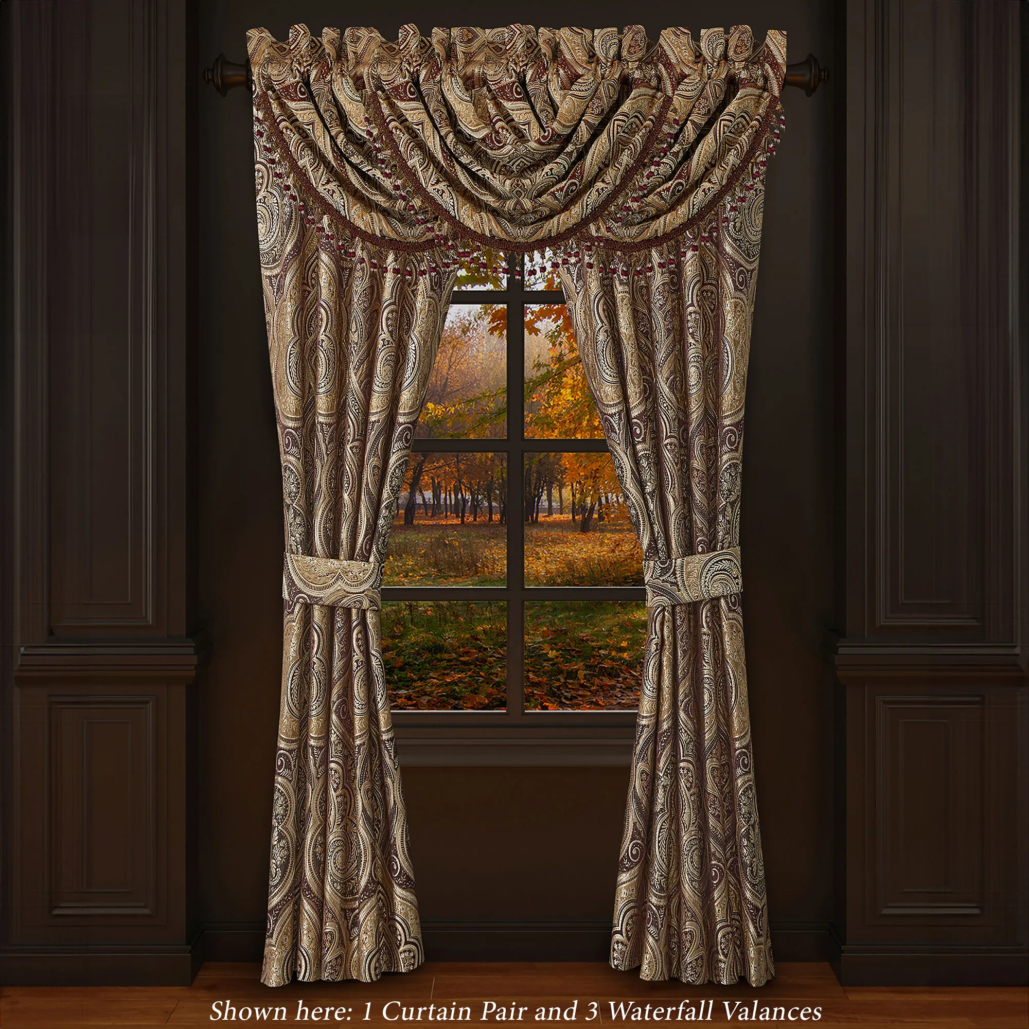 Window Treatment: Wide Curtain Pair has a 3" rod pocket and is 100"W; choose 84"L or 95"L. Each Waterfall Valance has a 3.25" rod pocket and is 49"Wx33"L. We recommend one valance for every 12"-15" of window width.