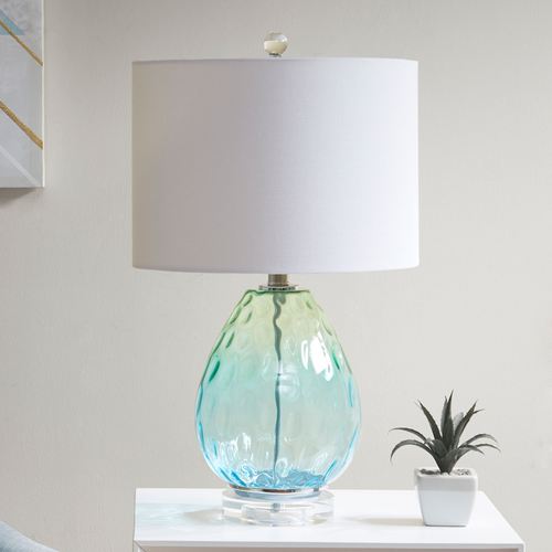 Borel Sky Blue and Pastel Green Ombre Dimpled Glass Table Lamp
