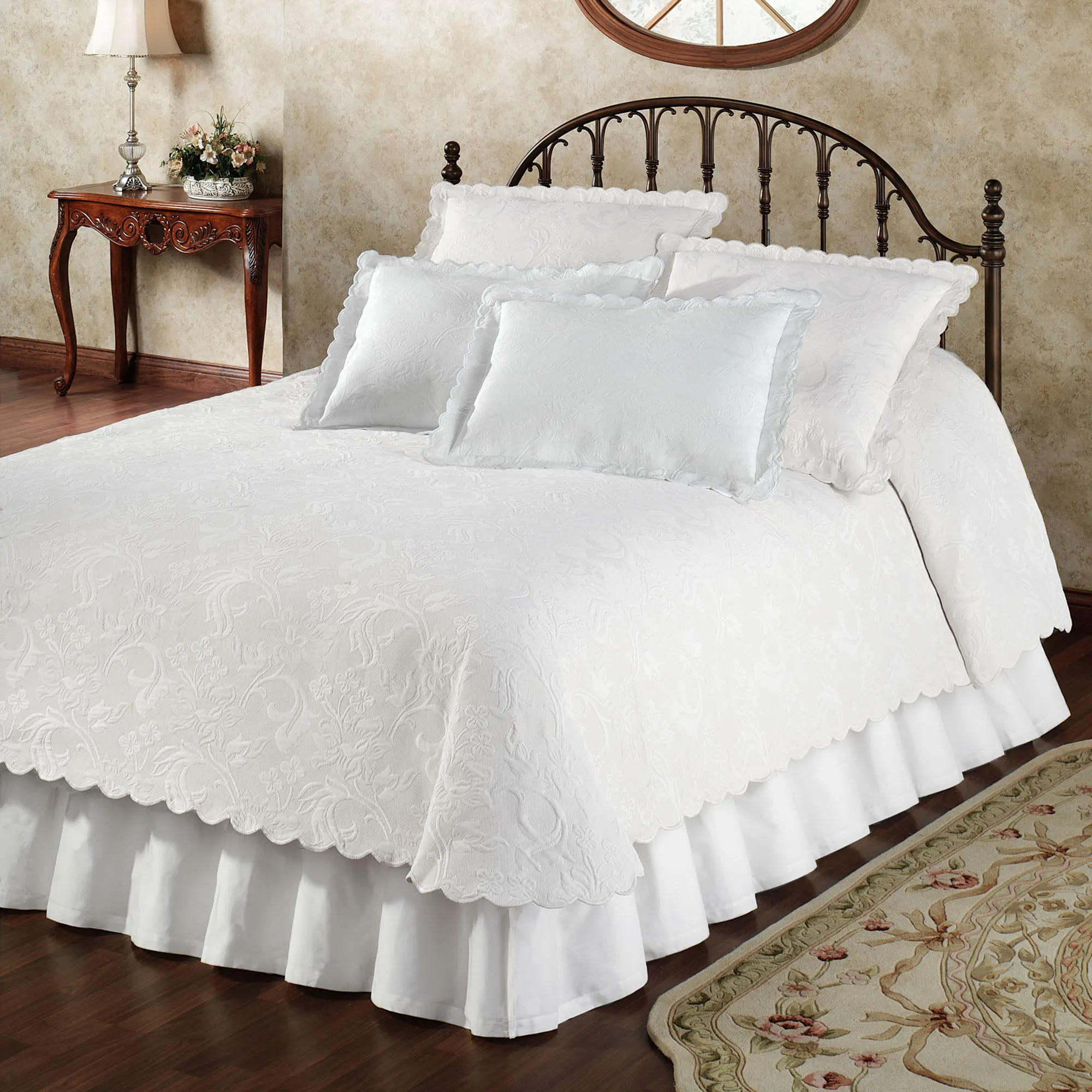 Botanical White Scalloped Bedspreads