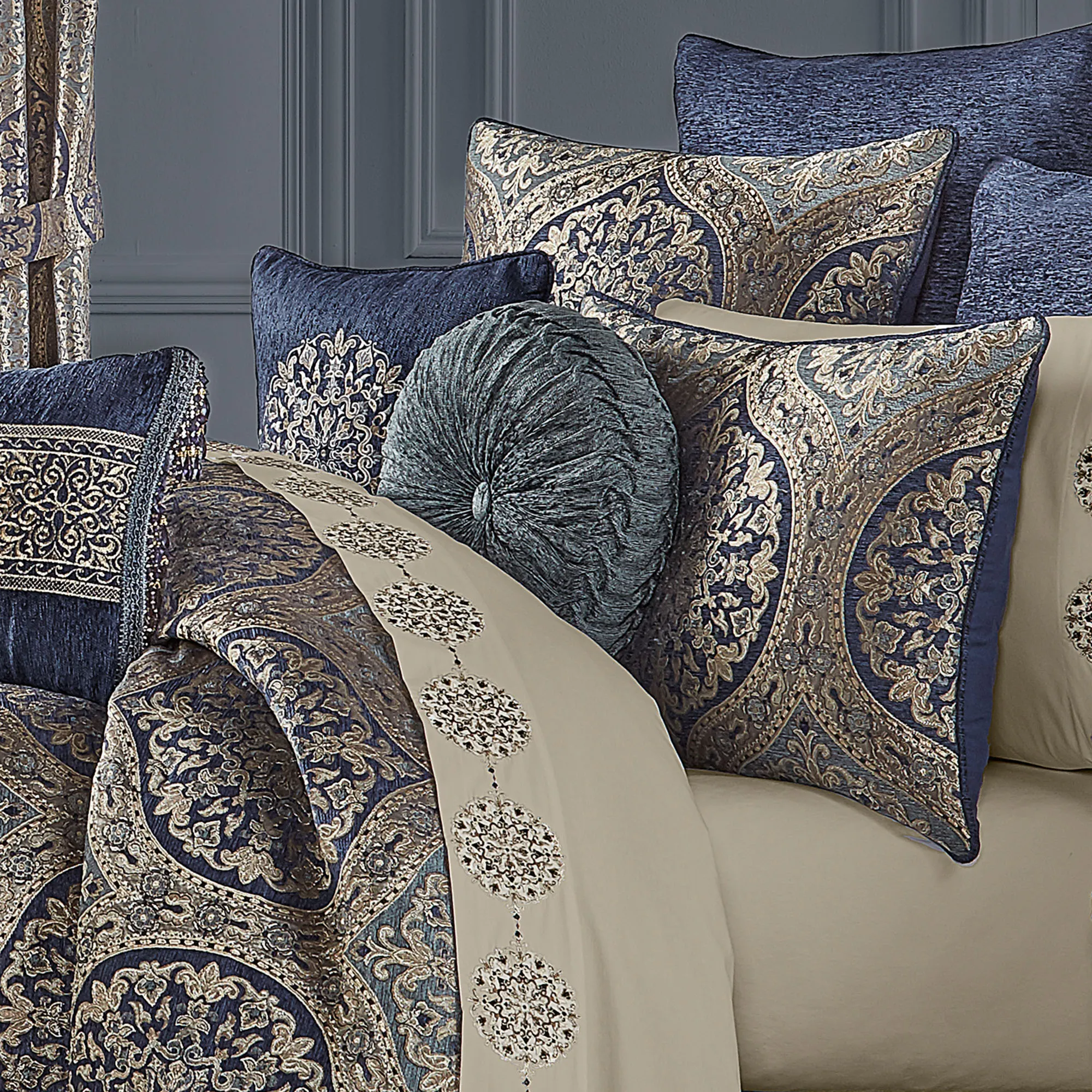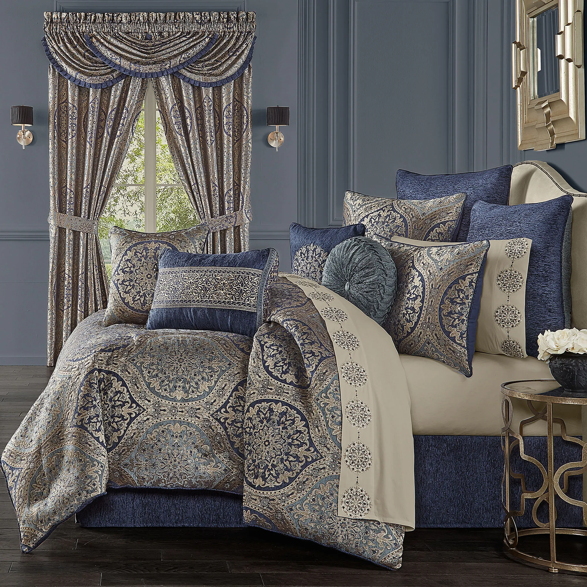 Botticelli Blue Ogee Medallion Comforter Bedding by J Queen New York